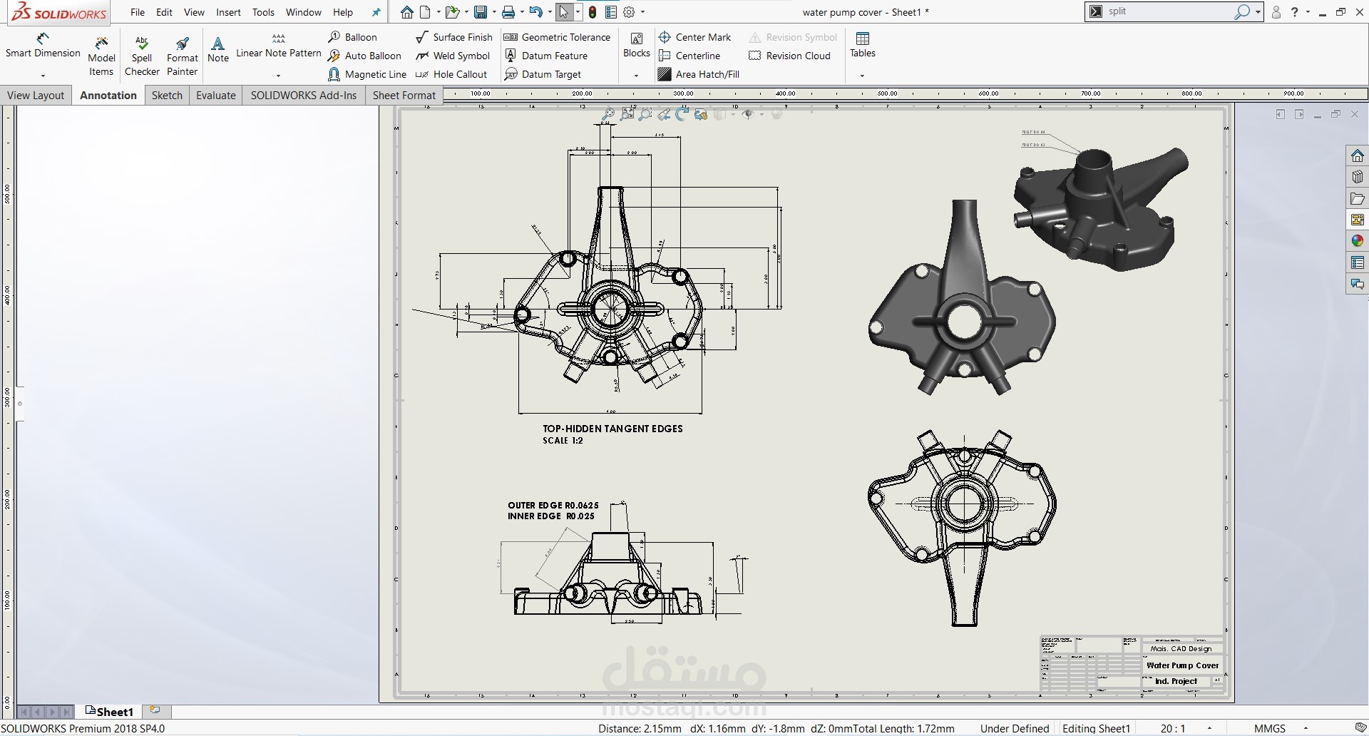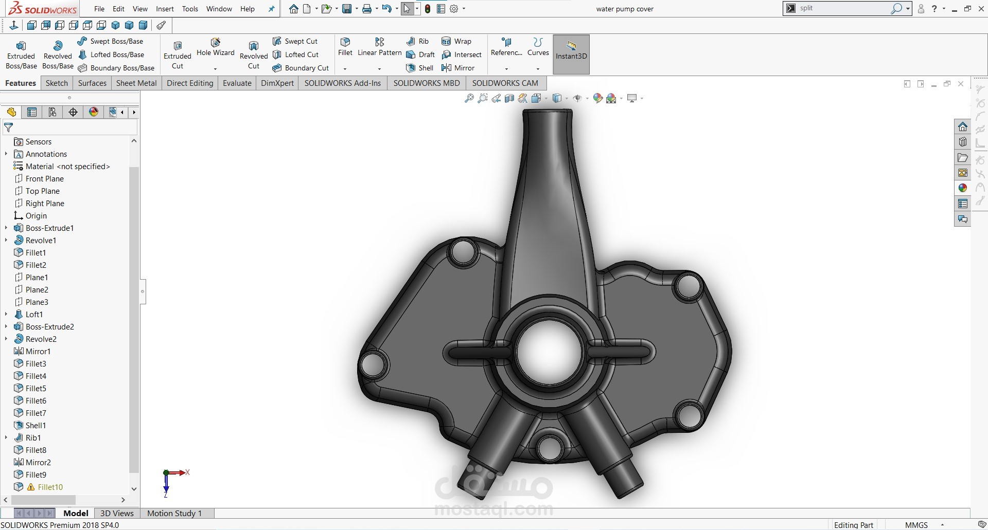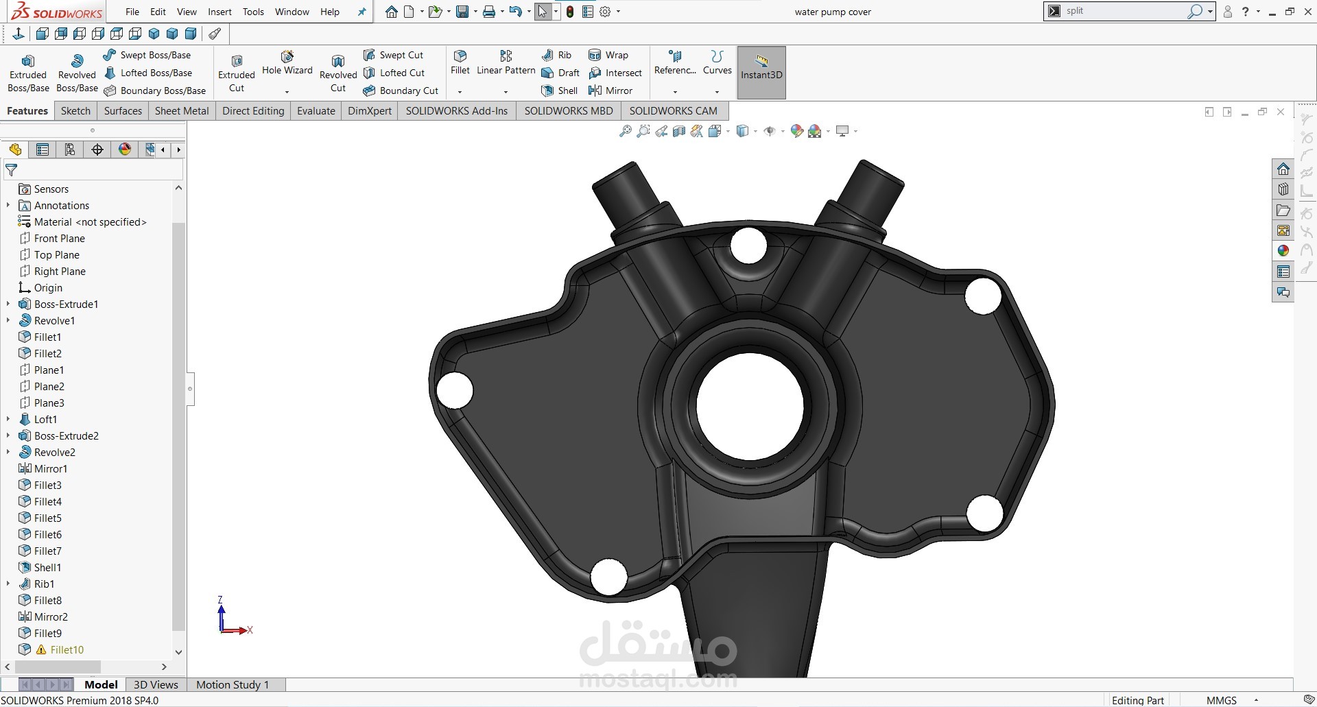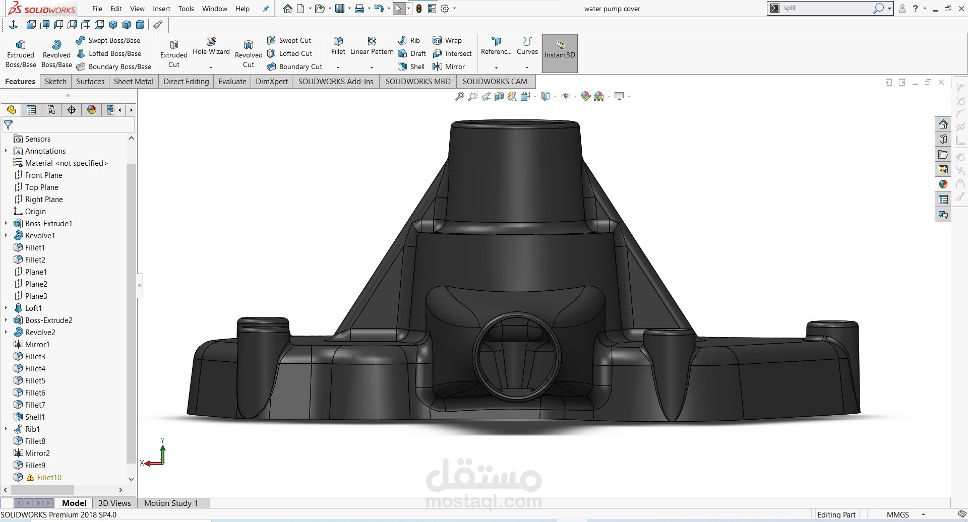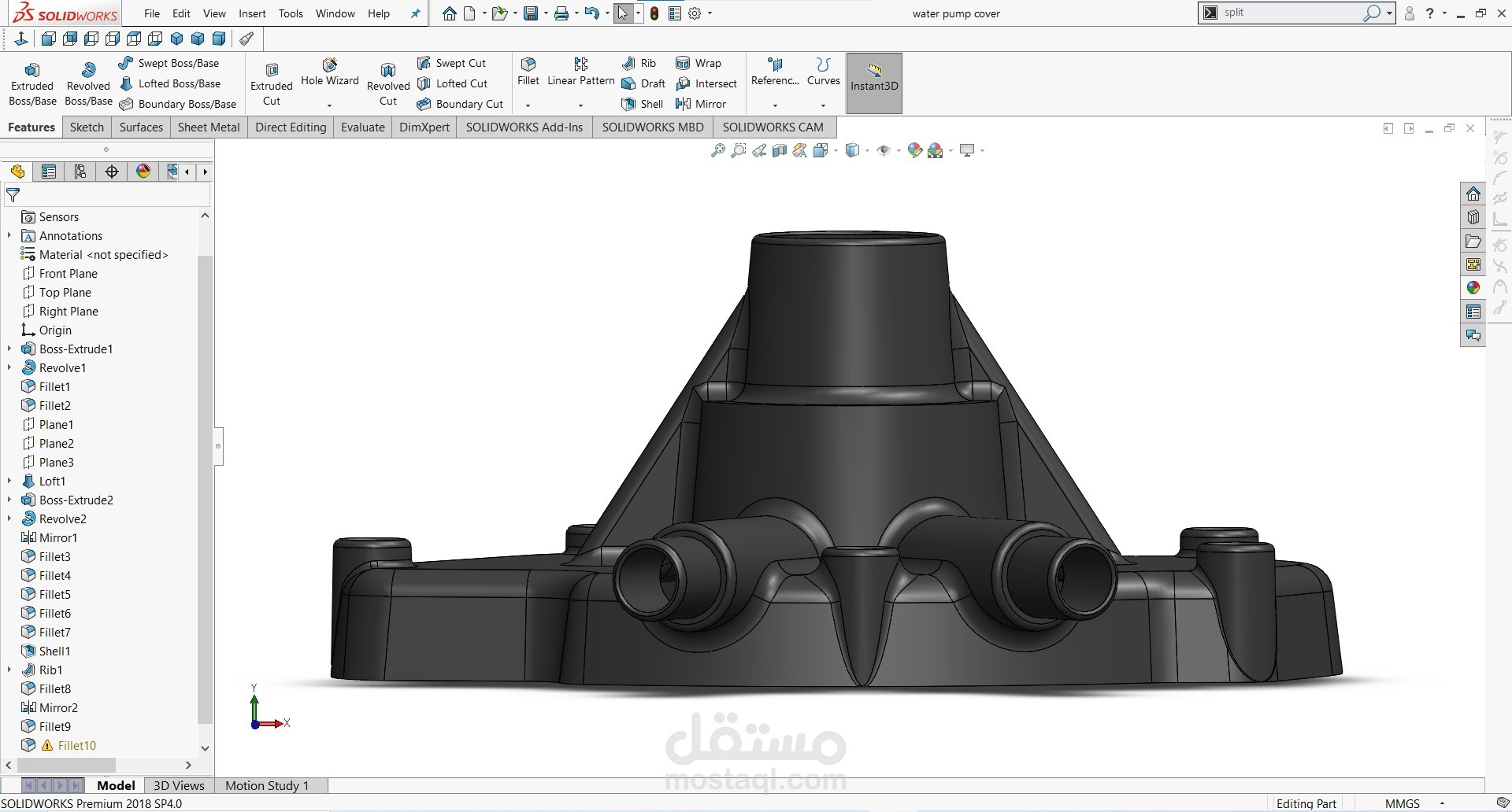 Designed a water pump housing cover with optimized fluid inlet/outlet channels, reinforced ribs for strength, and precise mounting features. The model ensures structural reliability, leak prevention, and efficient coolant circulation within automotive cooling systems.