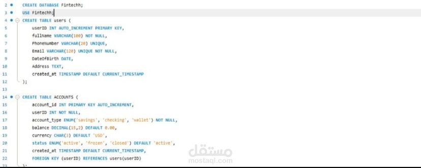 أنا متخصصه في تصميم وإنشاء قواعد البيانات مع خبرة في مجال الأنظمة المالية (FinTech). أقدر أساعدك في بناء قاعدة بيانات قوية، آمنة، وسهلة التوسع تدعم منصتك المالية أو التجارية.