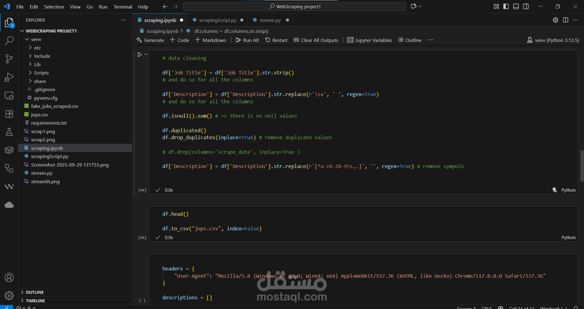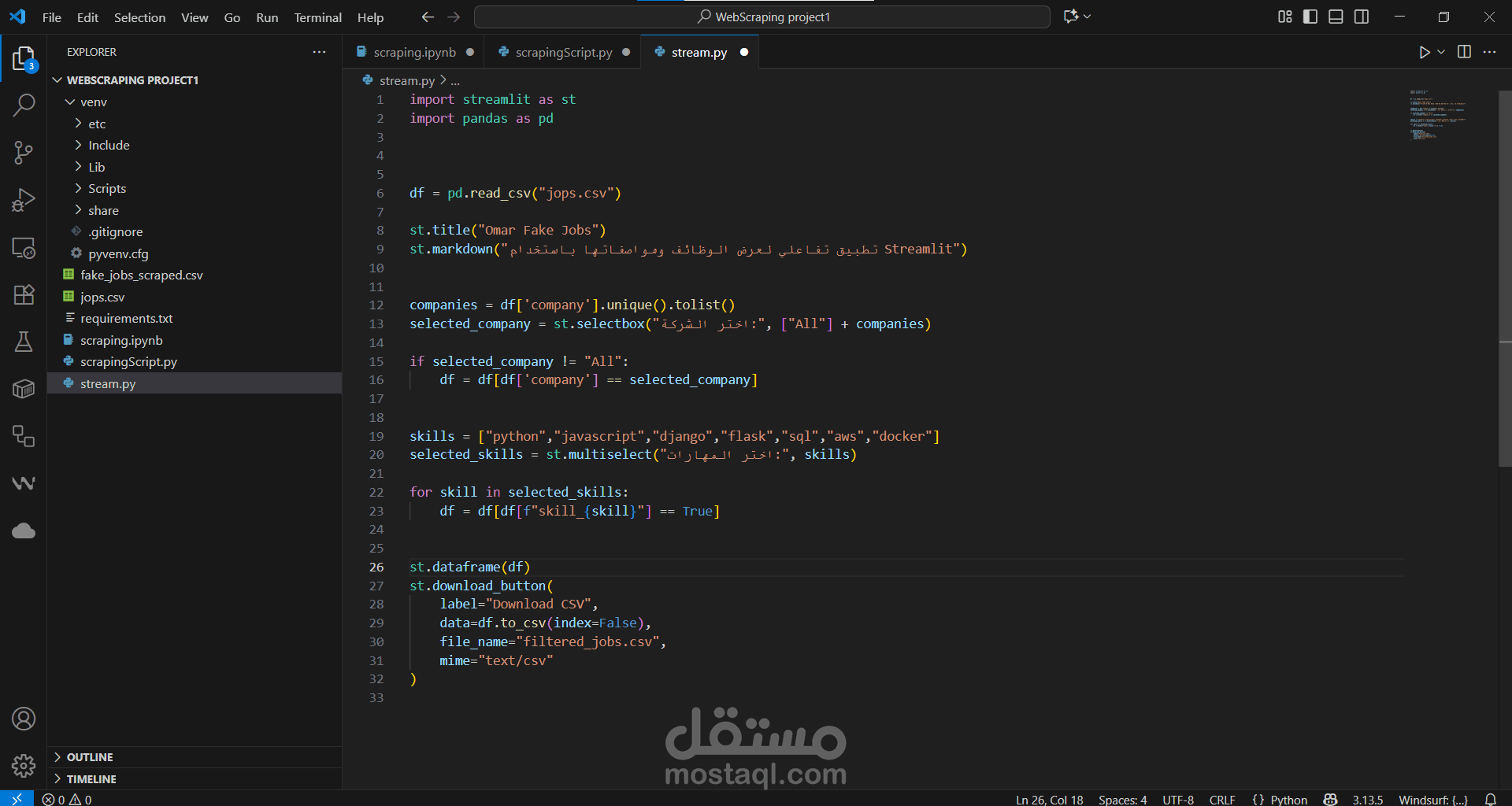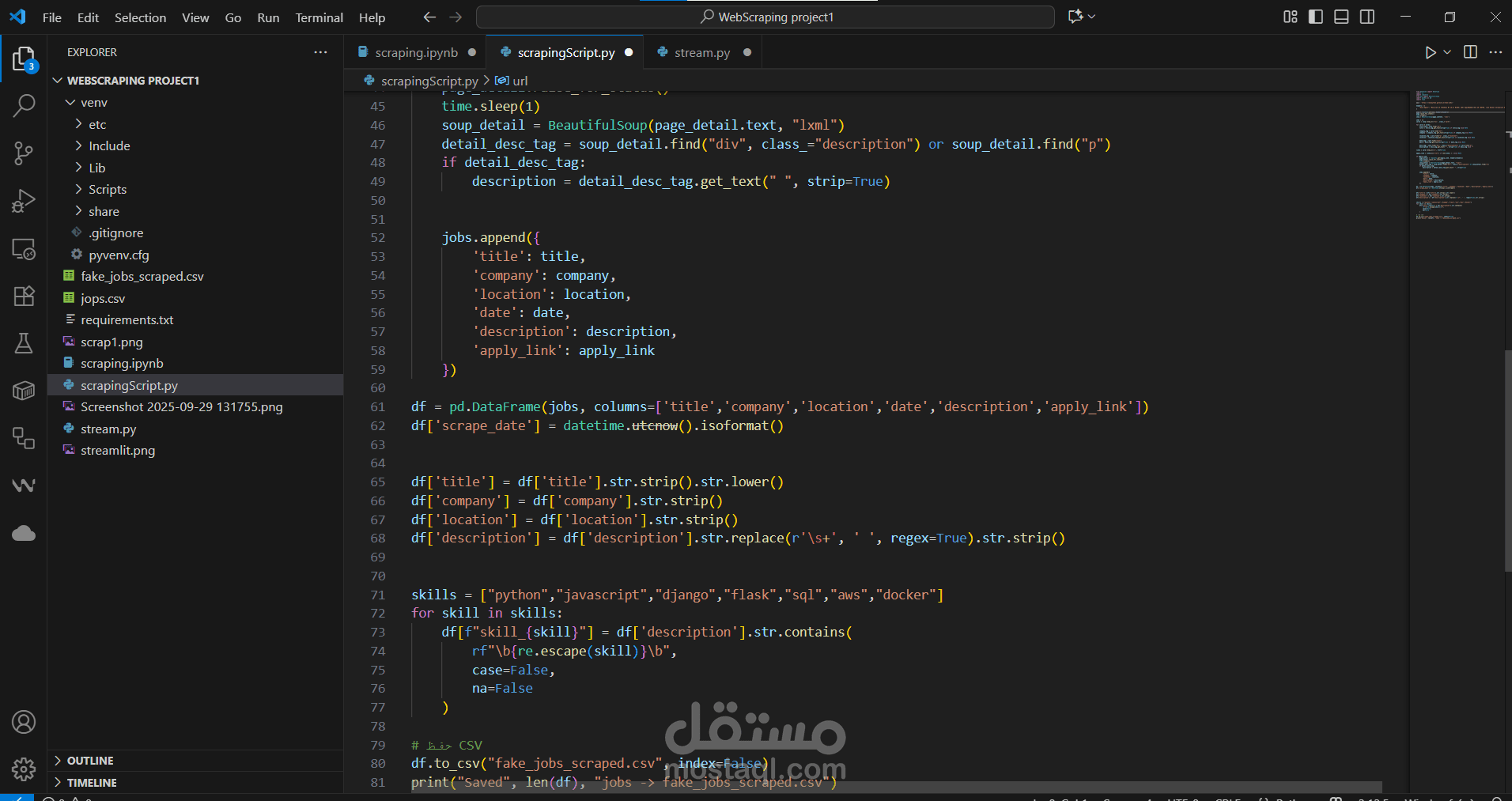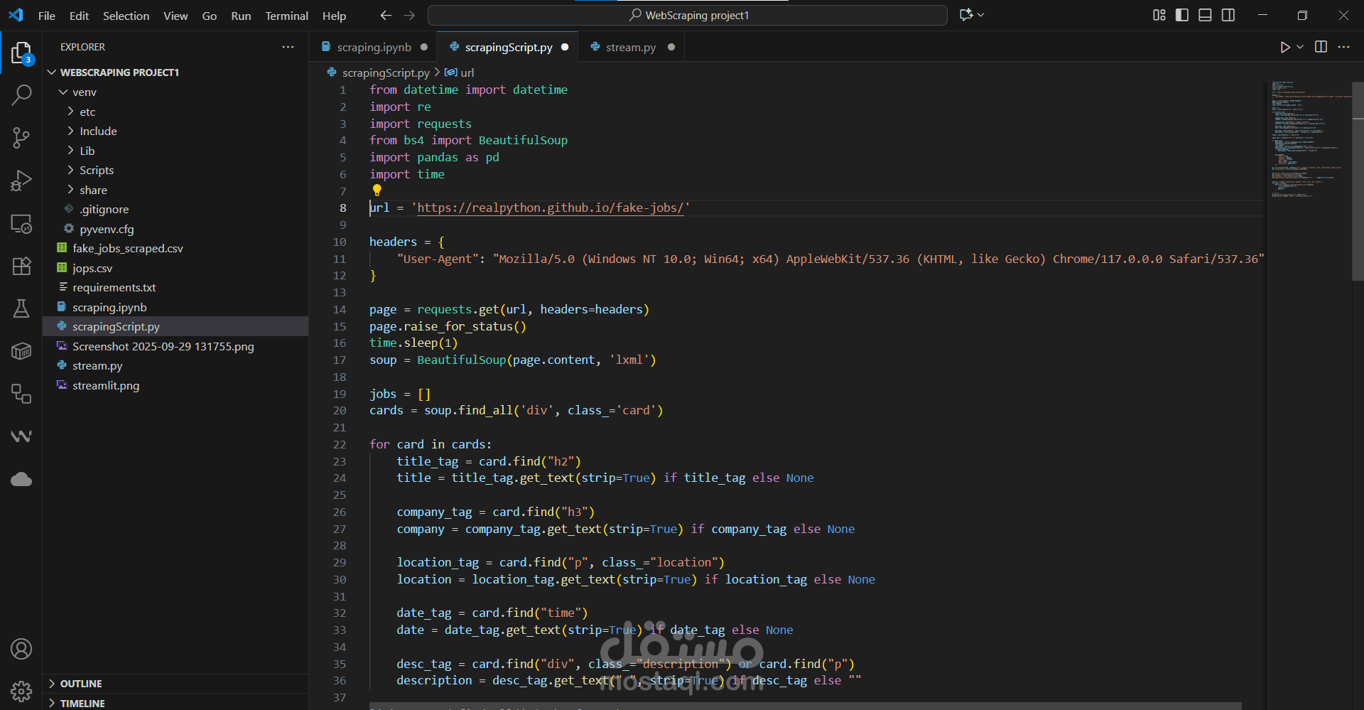 مشروع مستقل قمت فيه بعمل Web Scraping لموقع Jobs