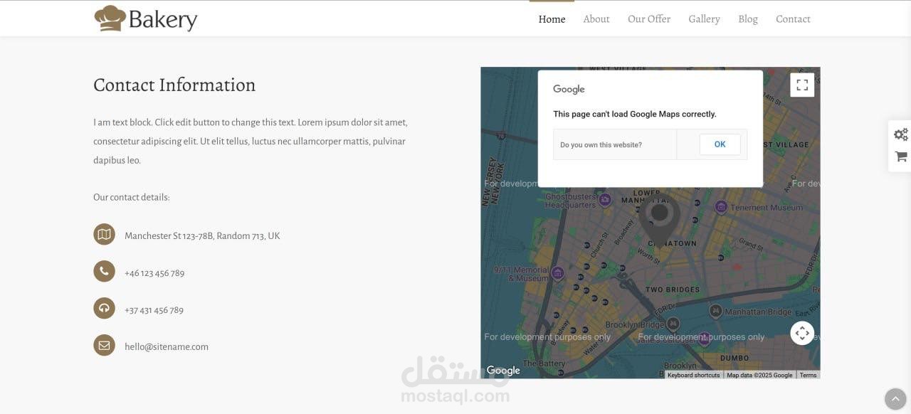 تصميم وتطوير موقع لمخبز باستخدام HTML و CSS بواجهة عصرية وألوان دافئة تناسب هوية المخبز. الموقع يتميز بتصميم بسيط وسهل الاستخدام، يعرض المنتجات مثل الخبز والمعجنات والحلويات بشكل منظم وجذاب.