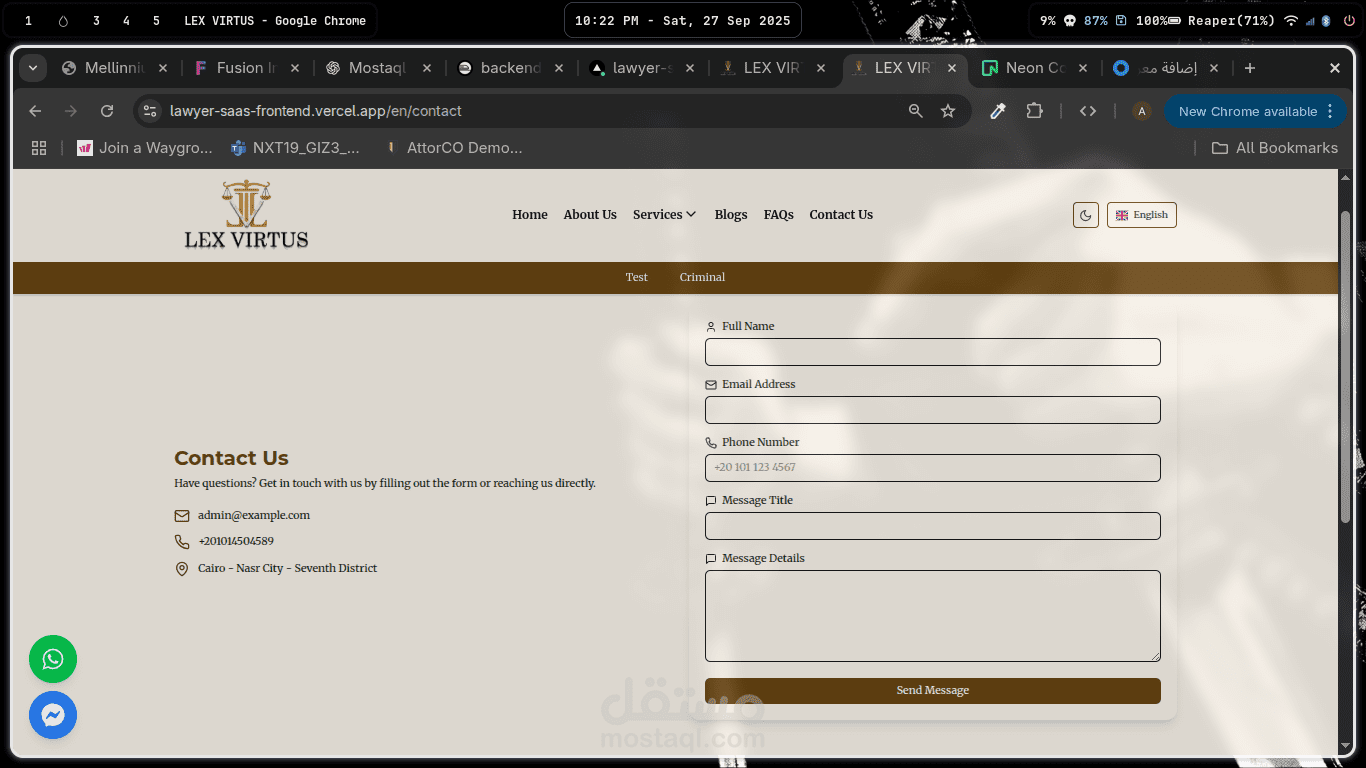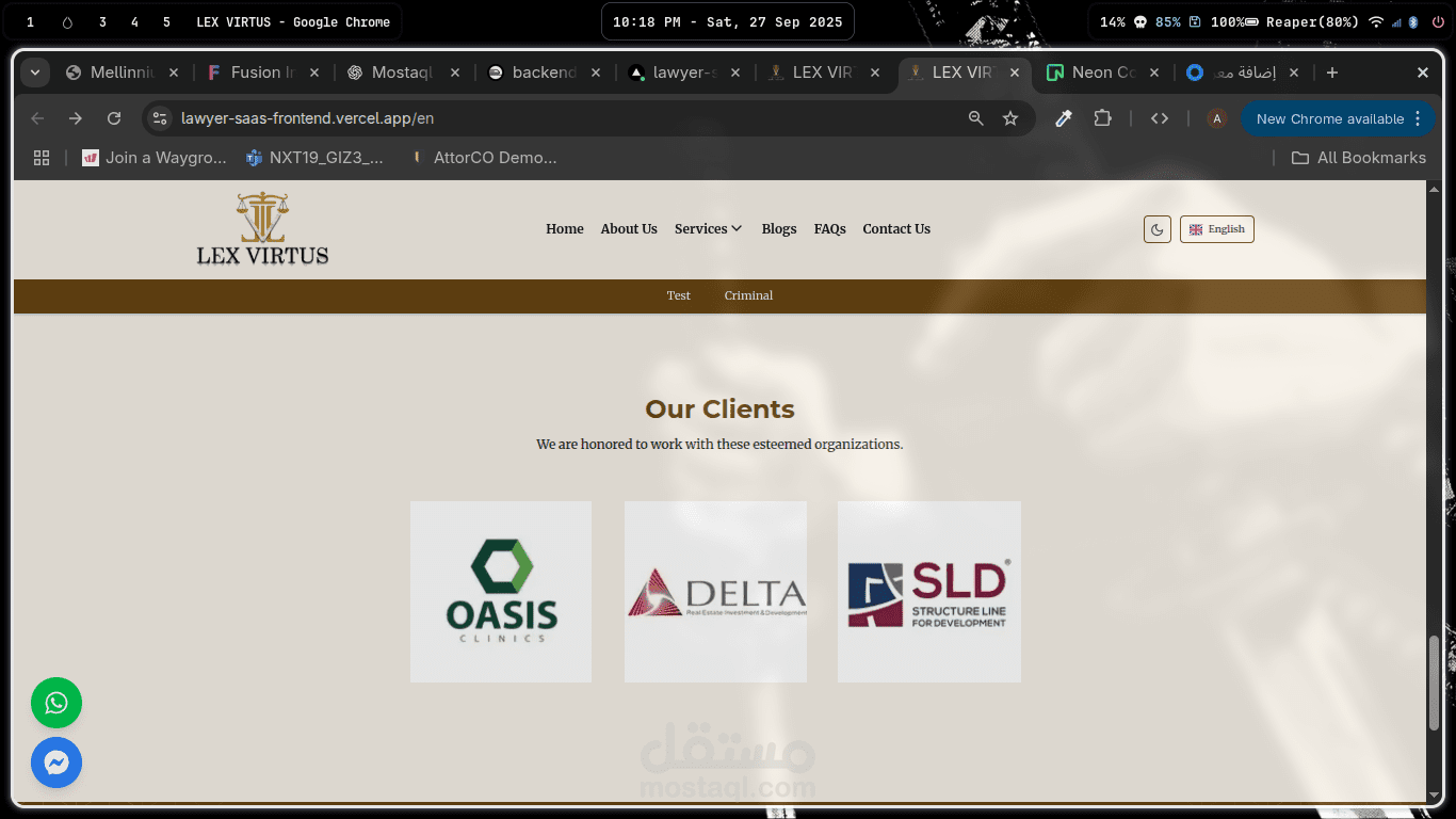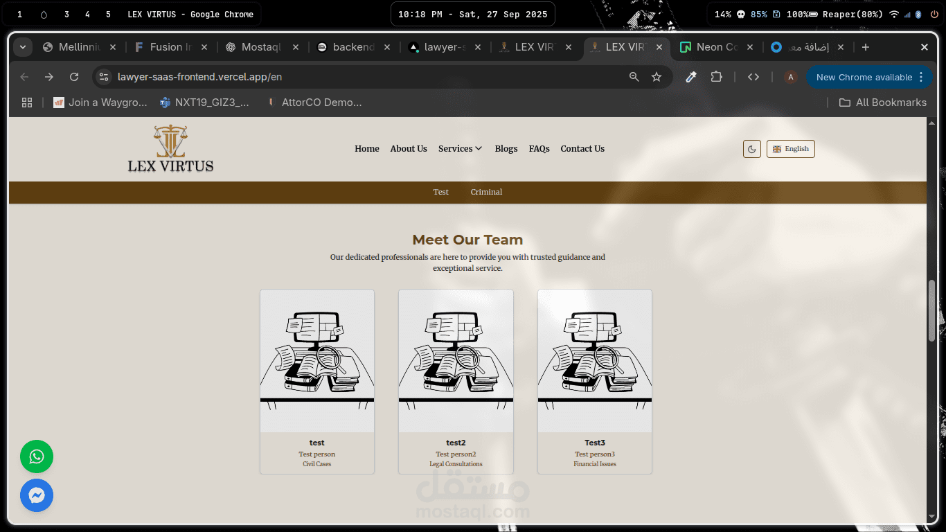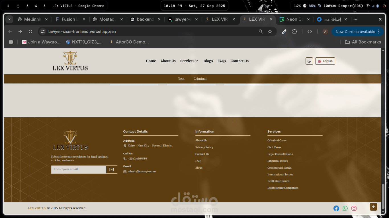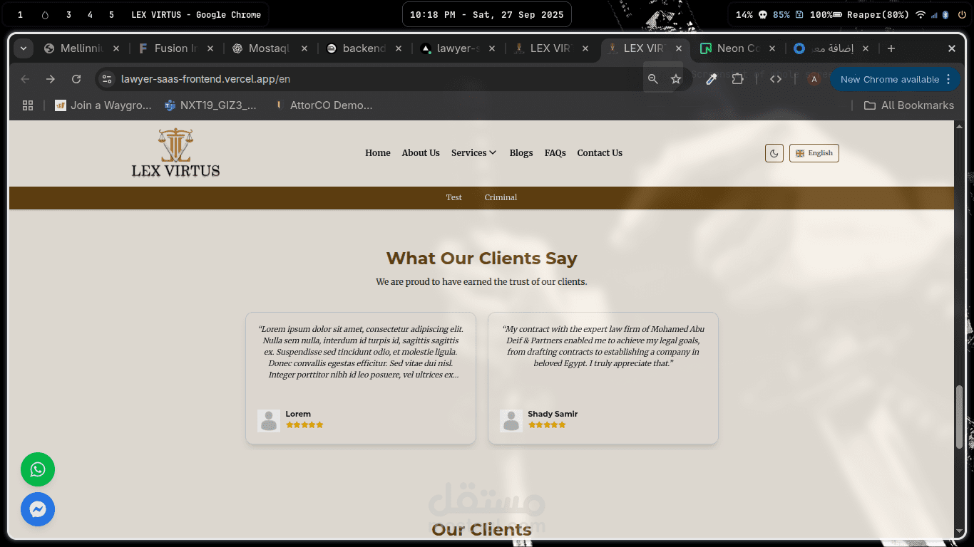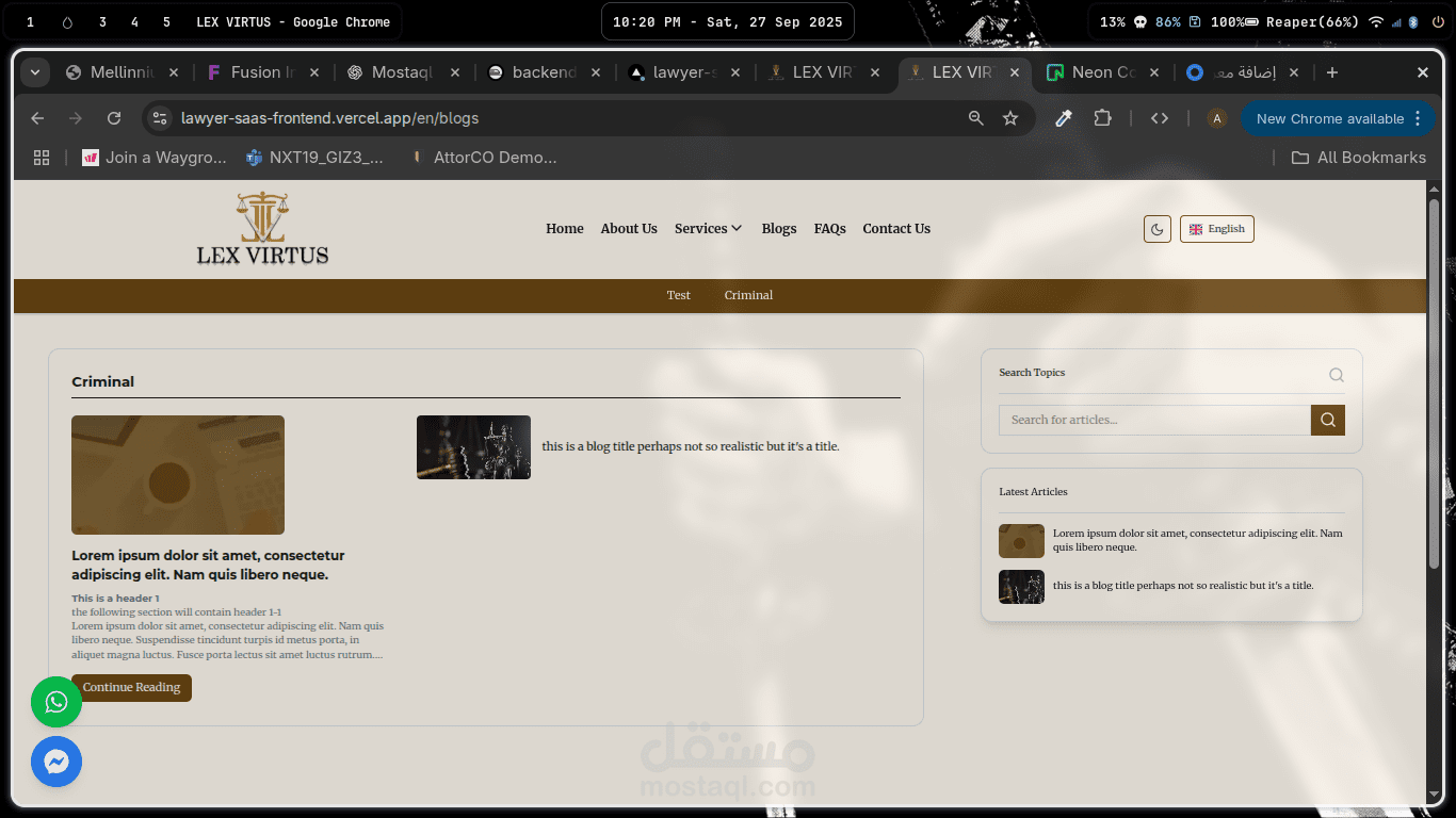a professional and modern website for a law firm that offers comprehensive legal services. The website includes sections for practice areas, blog articles, client testimonials, staff profiles, FAQs, and contact forms. It features an admin panel for managing content, user roles, and site settings, ensuring the site remains up-to-date and secure. The platform is fully responsive, SEO-friendly, and designed to provide an excellent user experience across all devices.