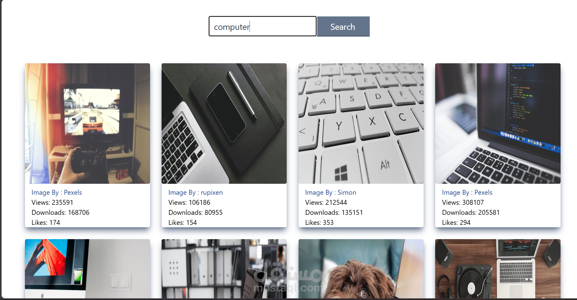 موقع ويب تفاعلي يتيح للمستخدم البحث عن أي كلمة مفتاحية، ويقوم بجلب الصور المتعلقة مباشرةً من Un splash API. يتميز بتصميم بسيط وسهل الاستخدام، مع عرض الصور بشكل منظم وجذاب، مما يوفّر تجربة سلسة للبحث والاستكشاف البصري وبالاضافة لامكانية تحميل هذه الصور بجودة عالية .