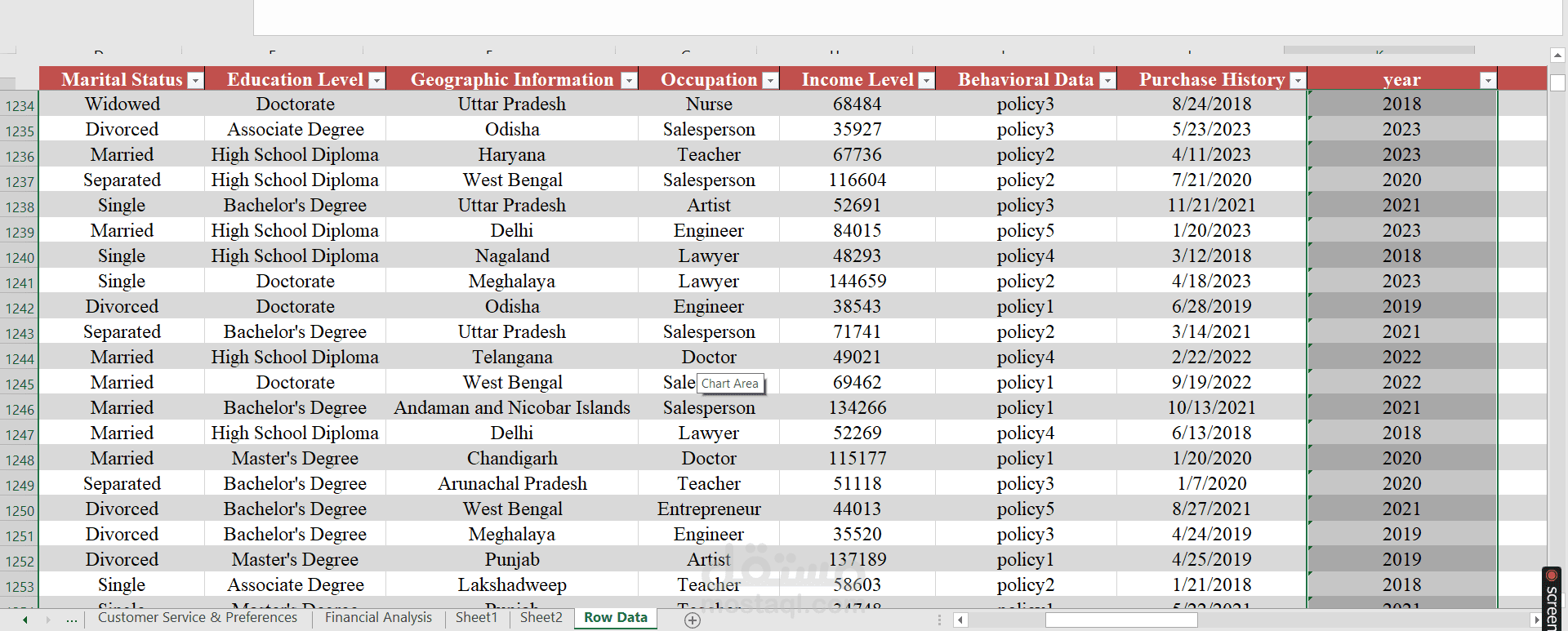 تصميم لوحة معلومات (Dashboard) تفاعلية في Excel لتحليل بيانات عملاء شركات التأمين، بحيث تساعد في تقسيم العملاء وفهم سلوكياتهم.