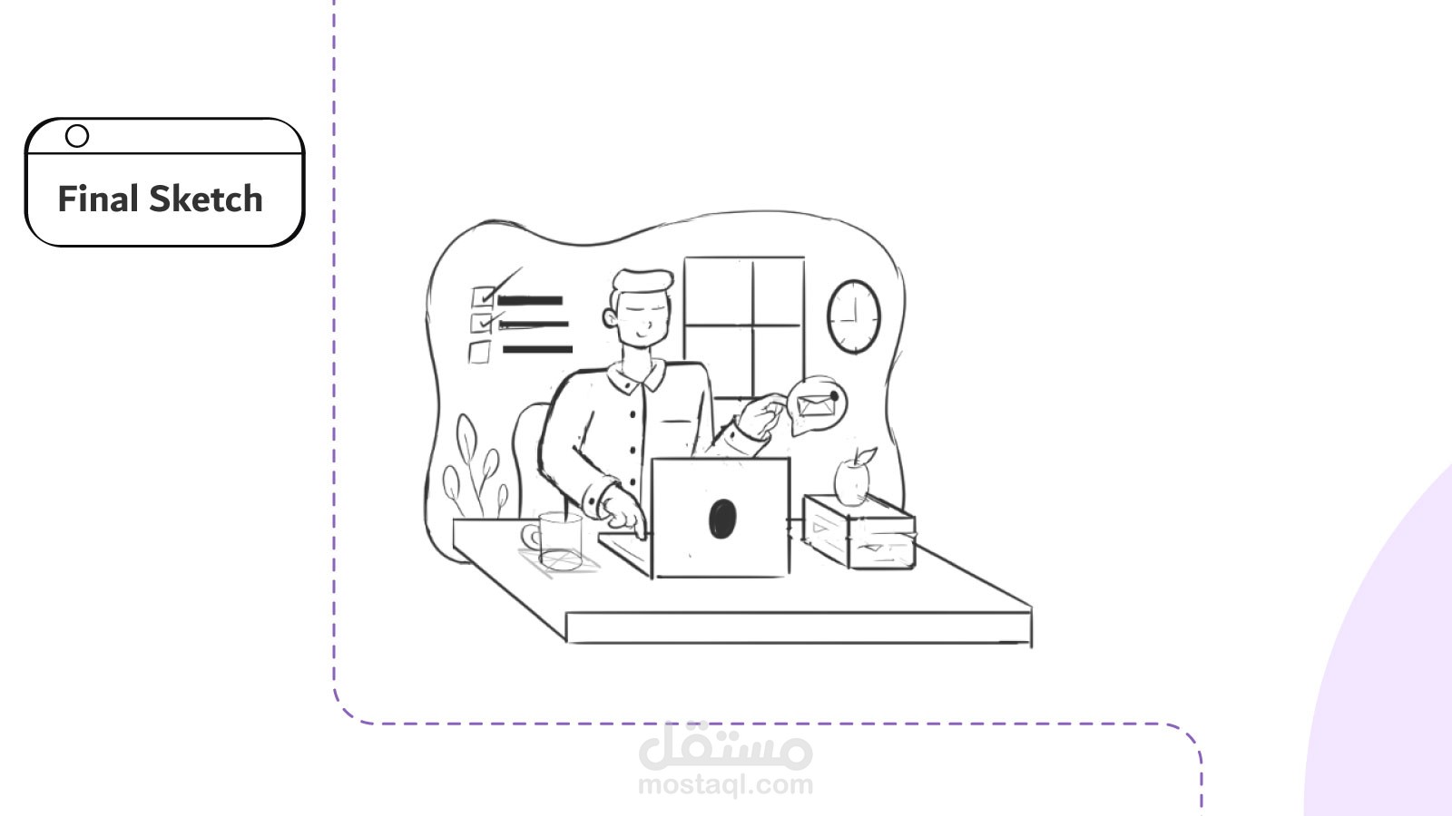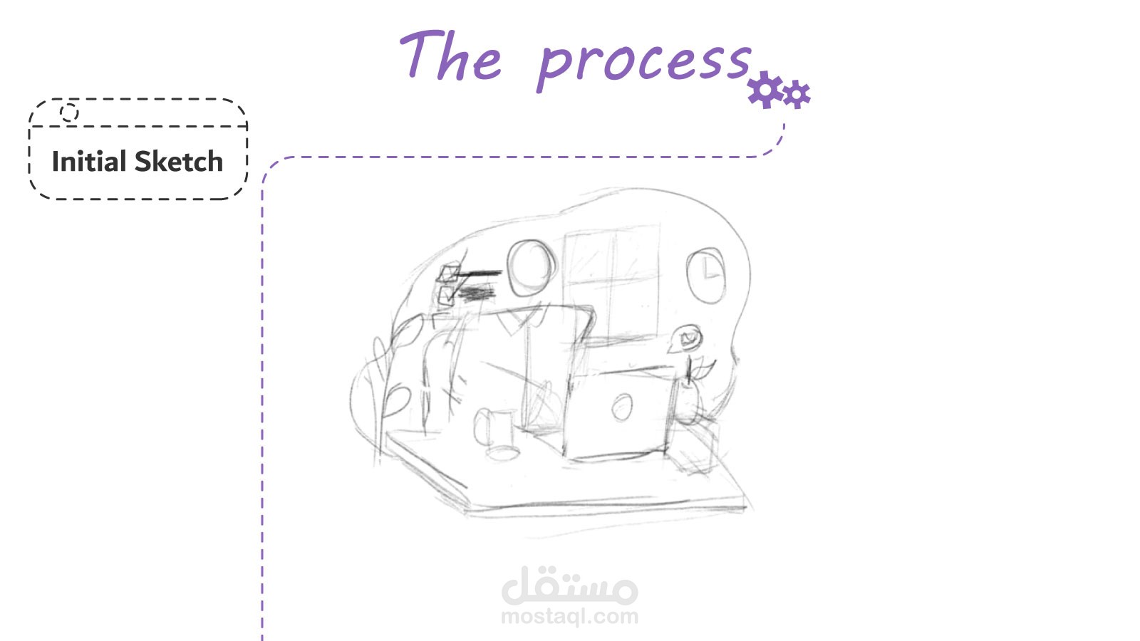 رسم توضيحي (Illustration) مرسوم يدويا عن العمل في المكتب و الإنتاجية