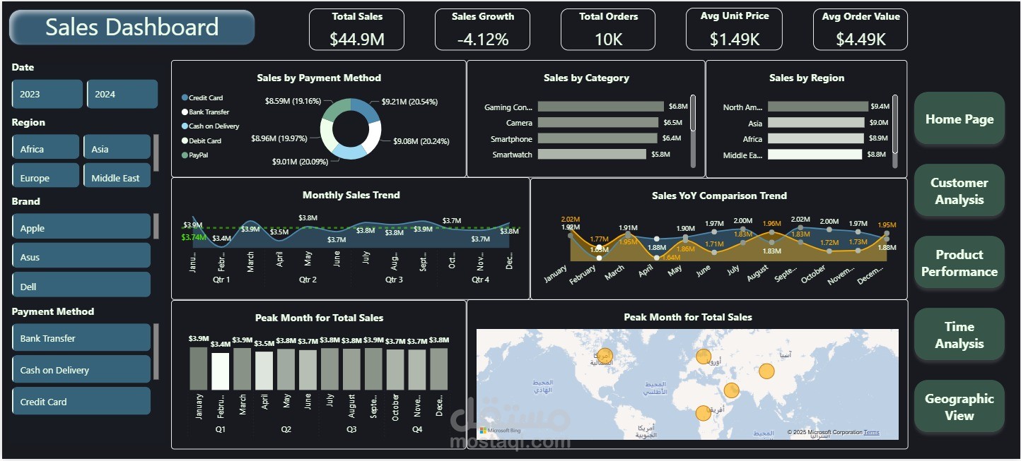 قمت بتحليل بيانات مبيعات منصة تجارة إلكترونية باستخدام Power BI بهدف استخراج رؤى عملية تدعم اتخاذ القرار.