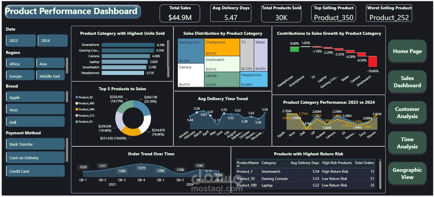 مقارنة الأداء عبر المناطق المختلفة ووسائل الدفع والشحن.