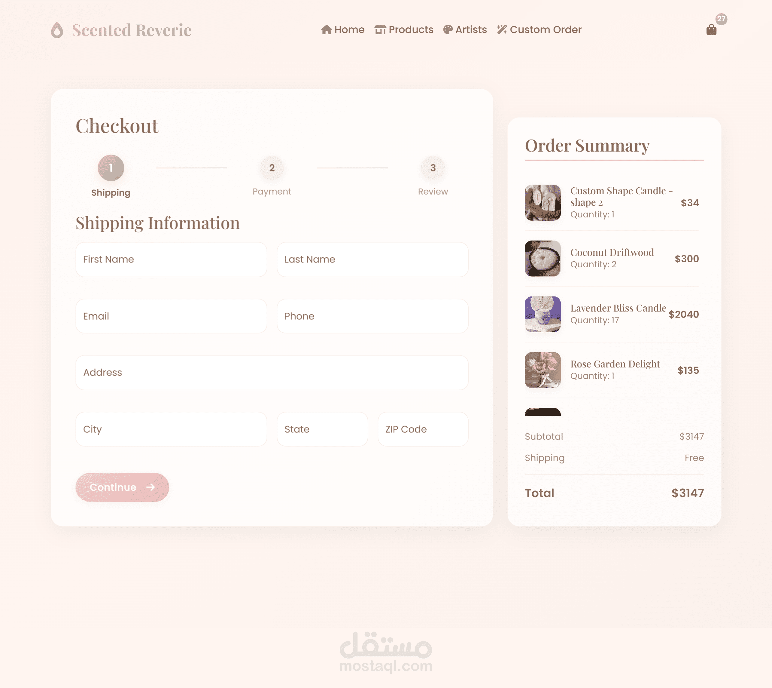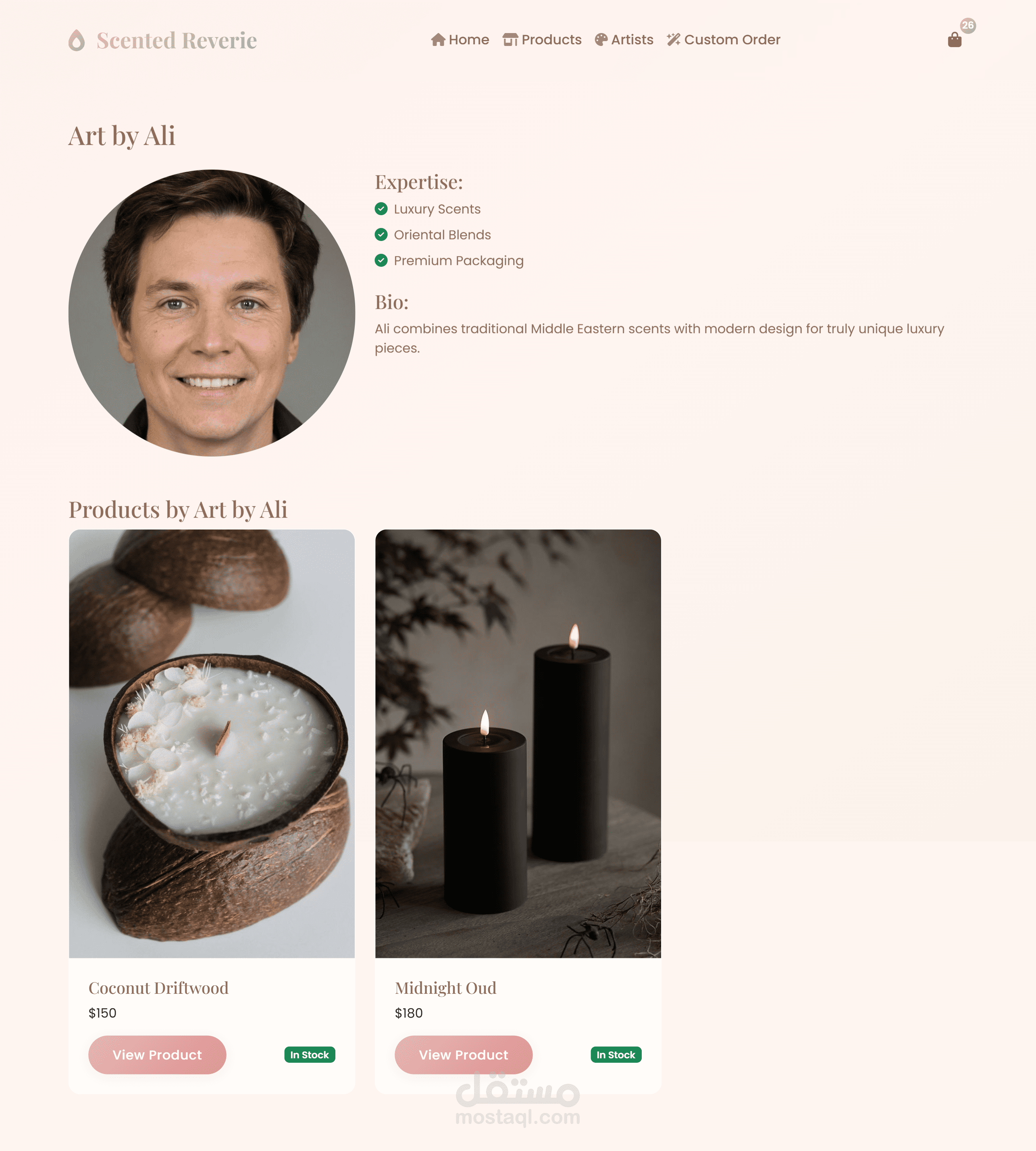منصة تجارة إلكترونية لبيع الشموع المعطّرة المصنوعة يدويًا، تم تطويرها باستخدام Angular 18 بواجهة أنيقة ومتجاوبة وتجربة استخدام سلسة.