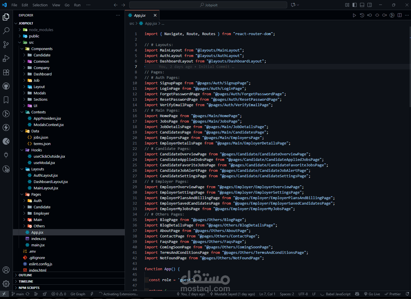 مشروع Jobpilot هو تطبيق ويب لبوابة وظائف حديثة مبني باستخدام React, TailwindCSS, و React Router.