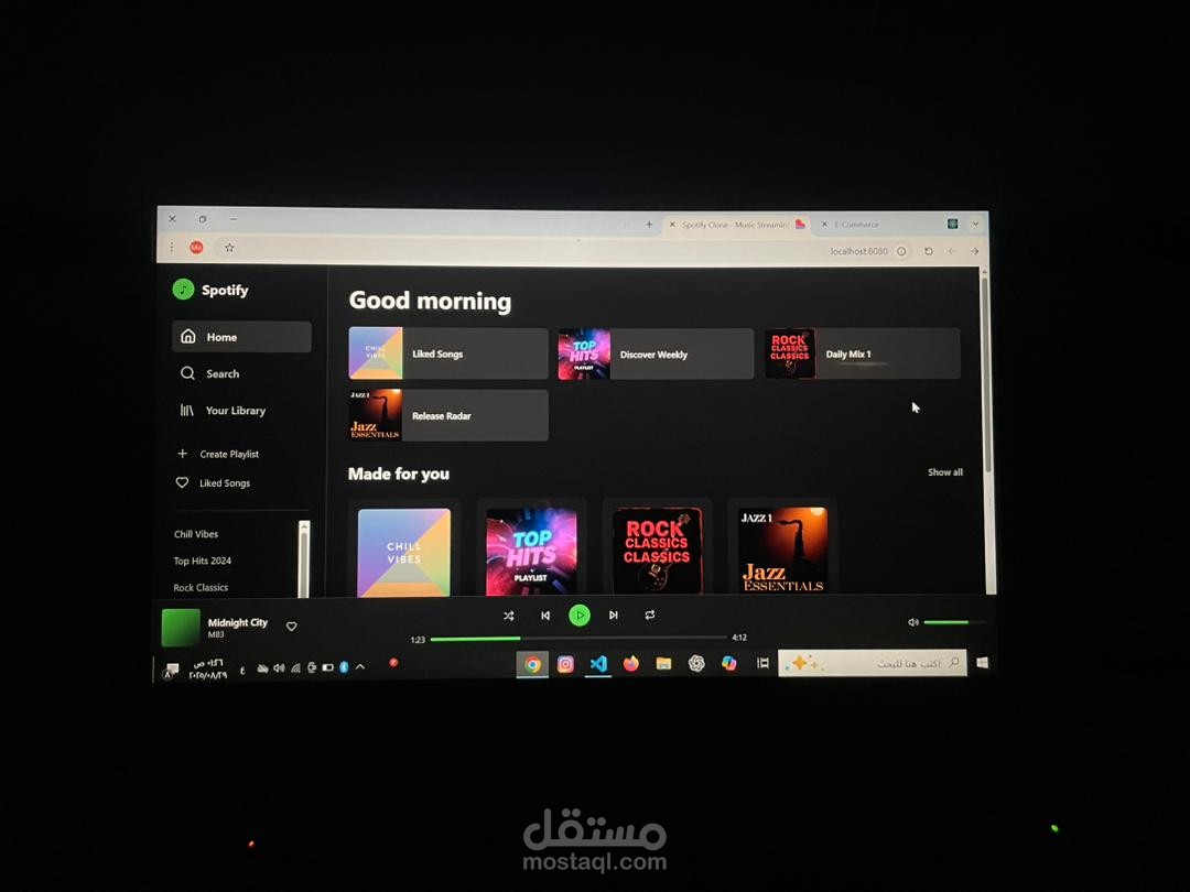 موقع إلكتروني Spotify Clone هو منصة ويب تم تصميمها لمحاكاة خصائص وتجربة الاستخدام الخاصة بموقع Spotify الشهير، مع واجهة حديثة وجذابة. يتيح هذا الموقع للمستخدمين: