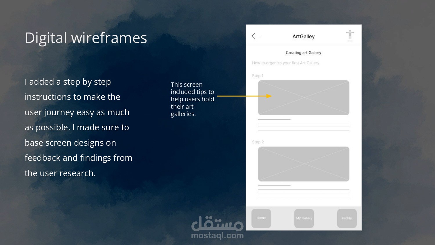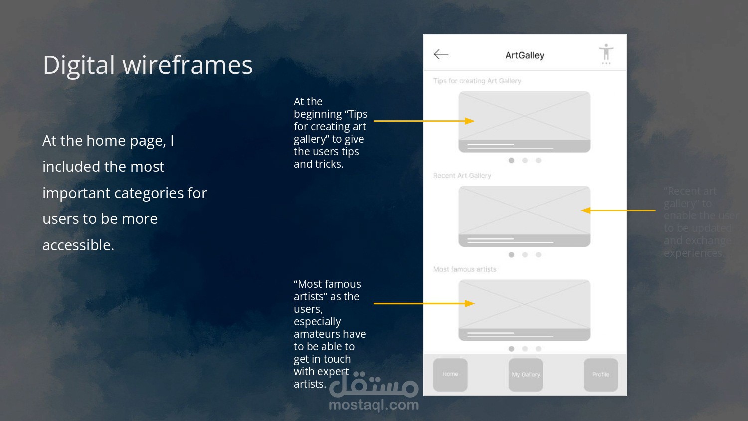 User-friendly interface with sections for Home, My Gallery, and Profile.