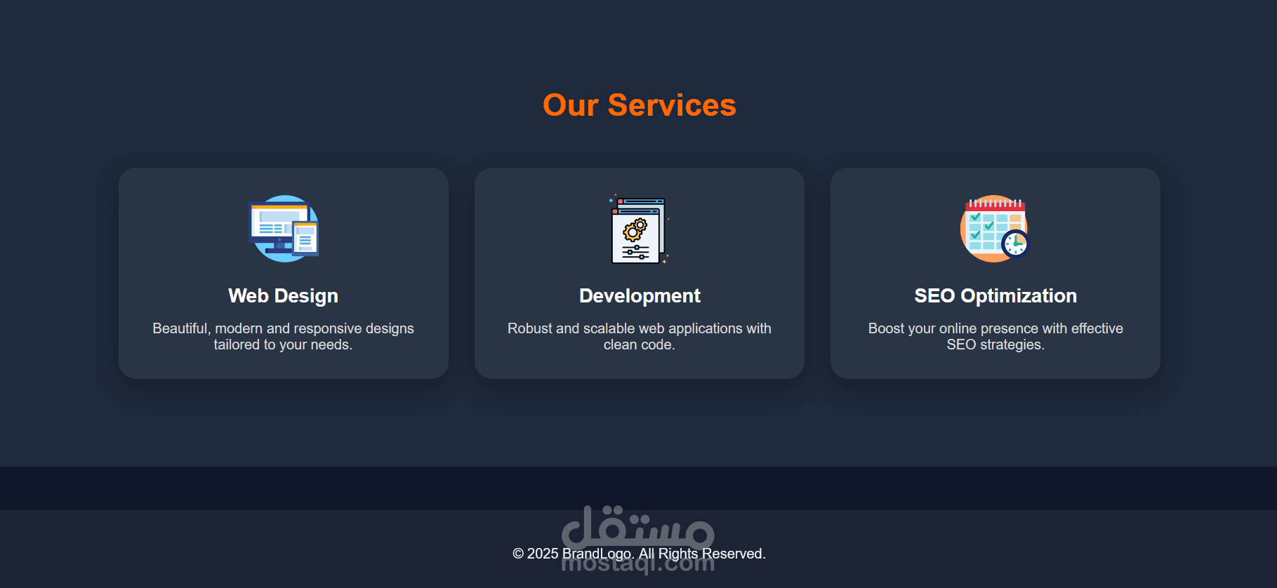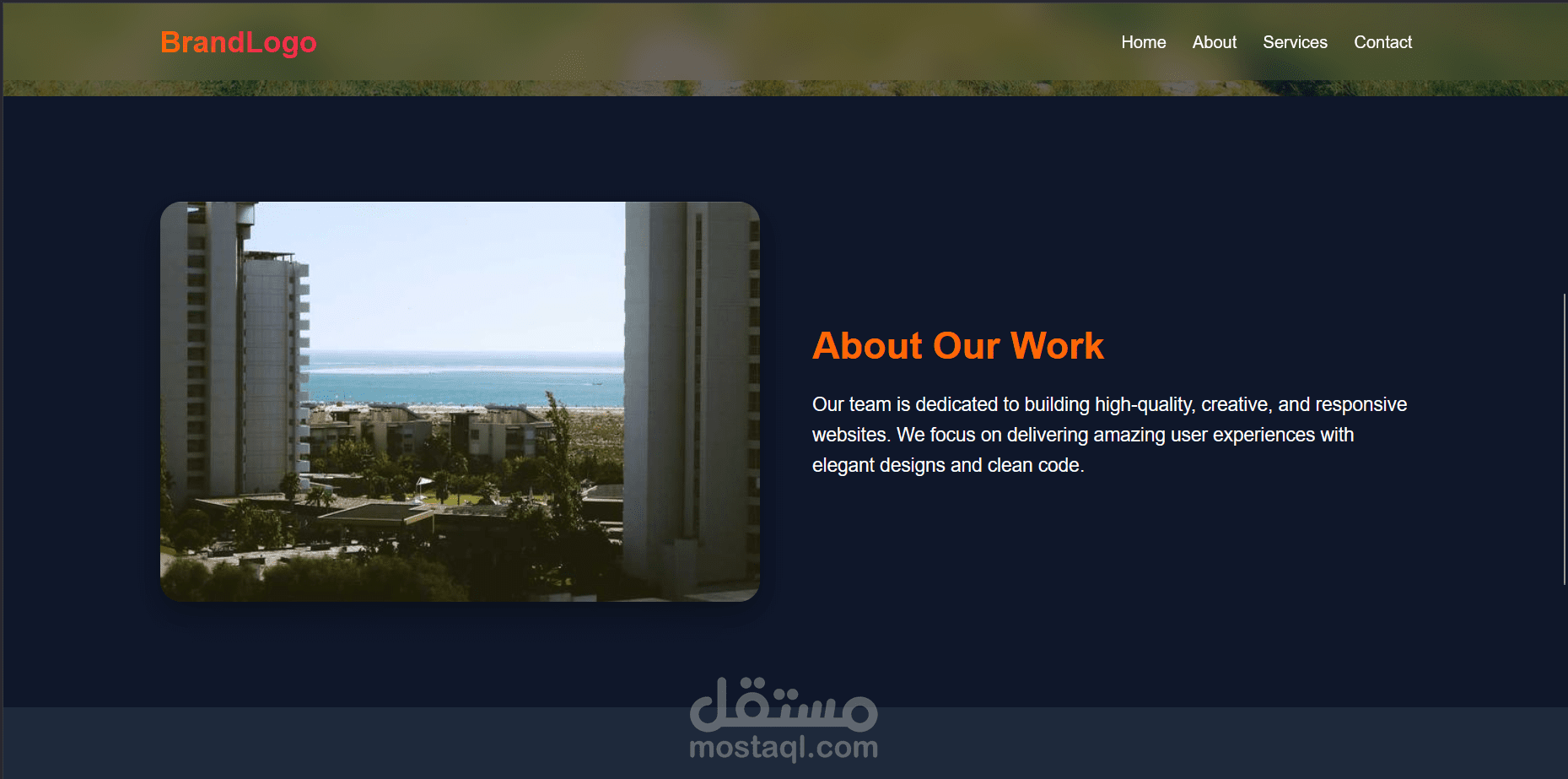 تم الاعتماد على هيكلة نظيفة ومنظمة للكود، مع استخدام تقنيات مثل Flexbox / Grid في توزيع العناصر، وأفكار بصرية مثل الألوان المتناسقة والخطوط الواضحة لتحقيق مظهر عصري واحترافي.