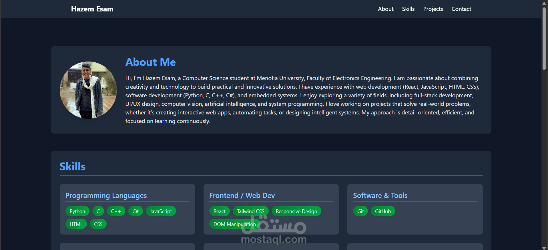 A modern personal portfolio website showcasing my skills, projects, and contact details. Built with a clean, responsive design and deployed on Netlify to ensure fast performance and accessibility across all devices.