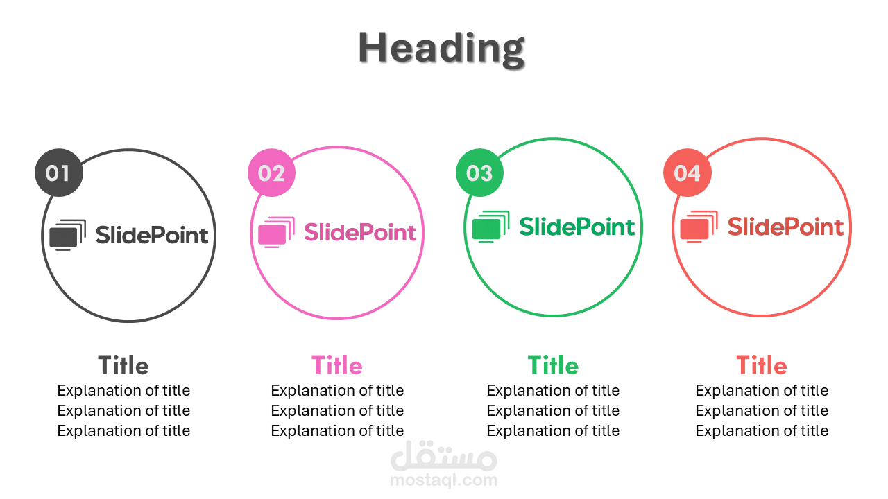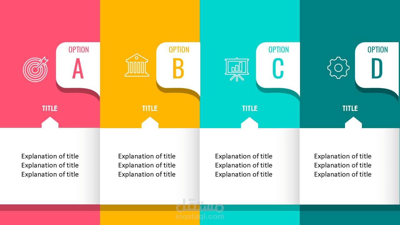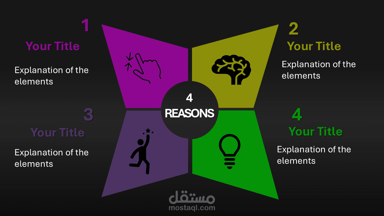 هذا التصميم يُعد خيارًا مثاليًا لعرض الأفكار بشكل مبسط، منظم، وذو تأثير بصري قوي.