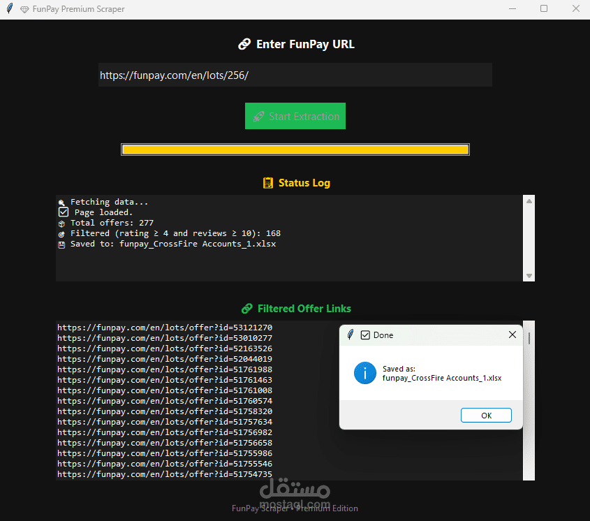 في هذا المشروع قمت بتطوير وتنفيذ نظام Web Scraping احترافي لاستخلاص البيانات تلقائيًا من مواقع التجارة الإلكترونية (مثل: FunPay وU7Buy)، باستخدام أدوات برمجية متقدمة مبنية على Python وواجهات رسومية (GUI) تفاعلية.