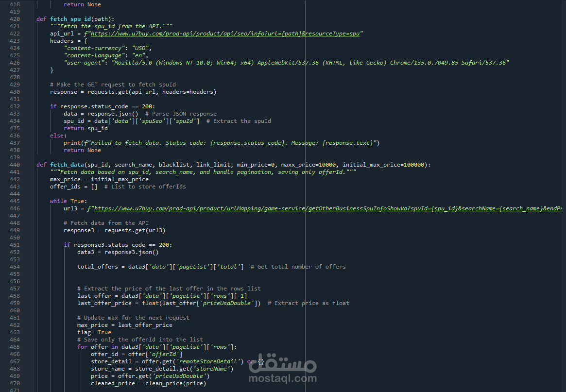 استدعاء واجهات API للمواقع المستهدفة بطريقة مرنة.