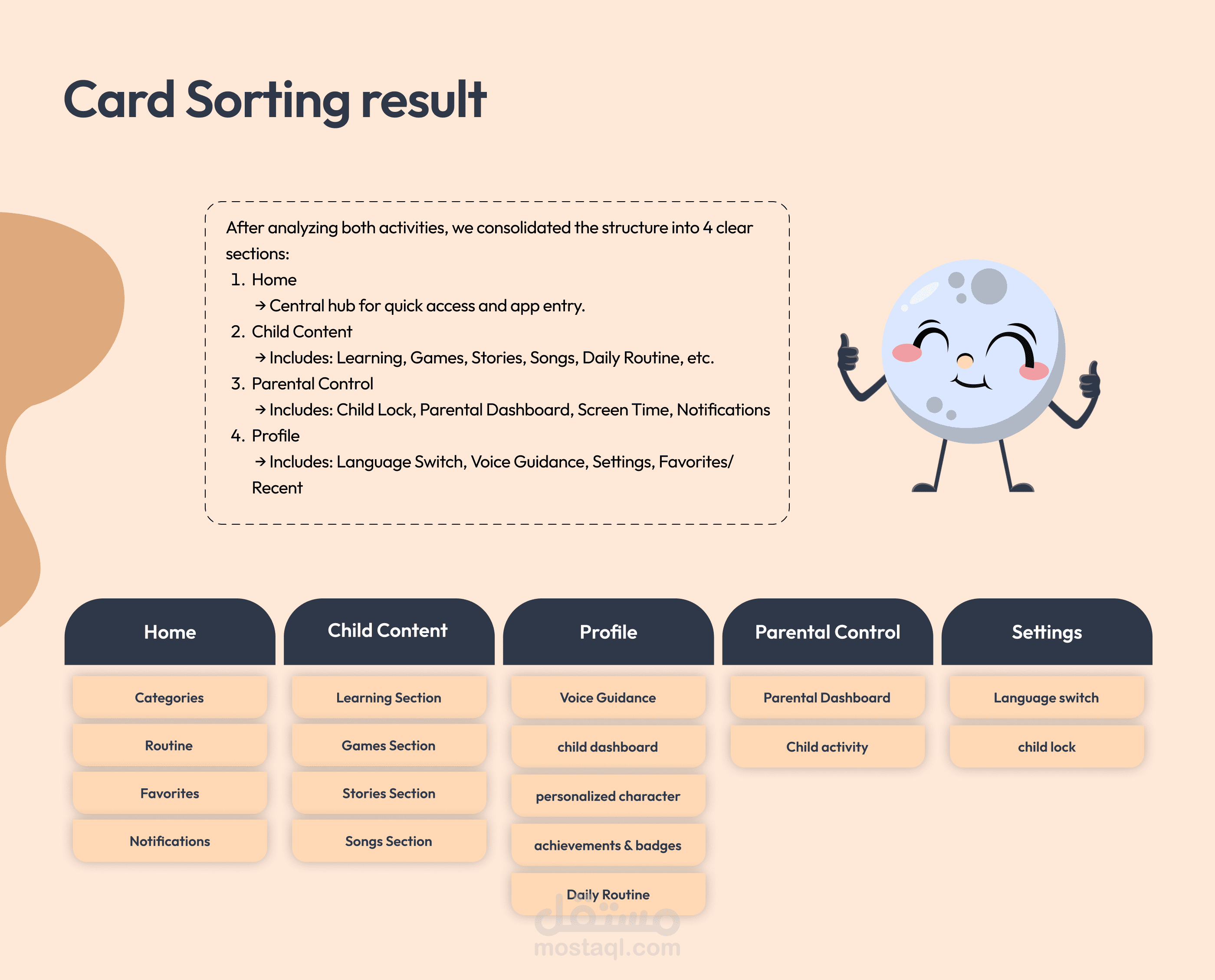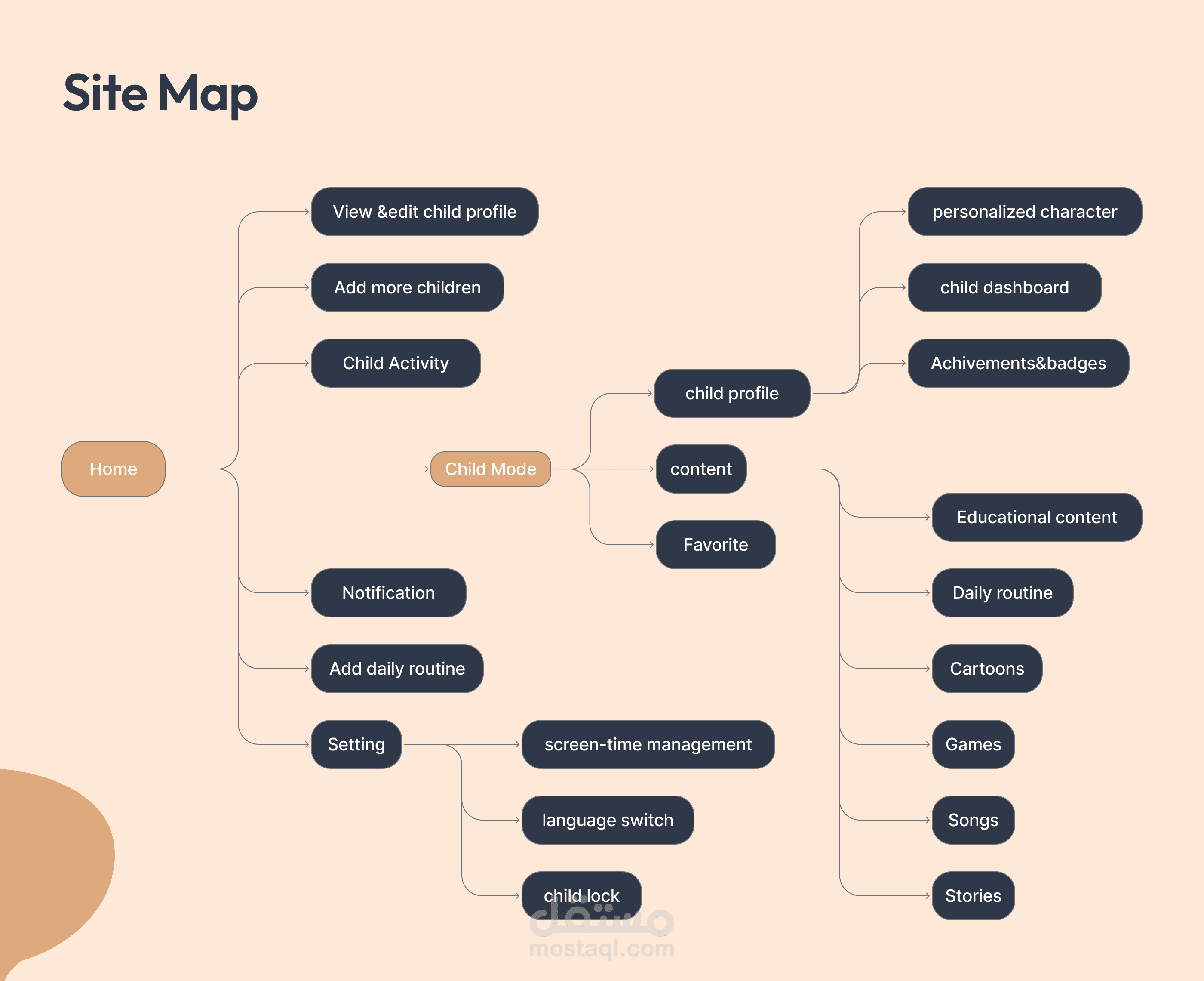 خريطة الموقع وتدفّق المستخدم: لتوضيح كيفية تنقّل الطفل داخل التطبيق بسهولة ودون تعقيد.