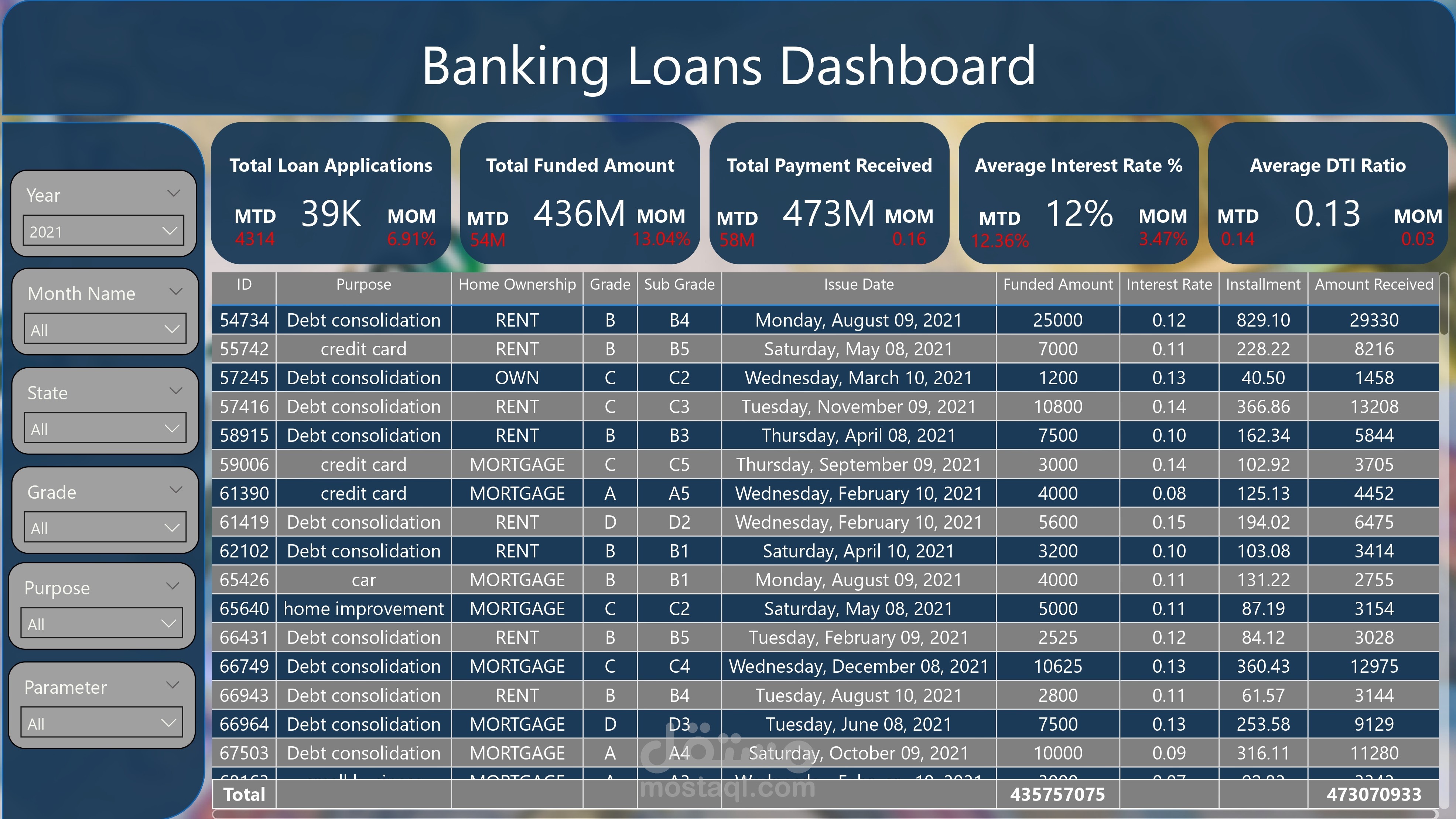 - تفاصيل دقيقة (Details) لكل القروض والبيانات المرتبطة بها.