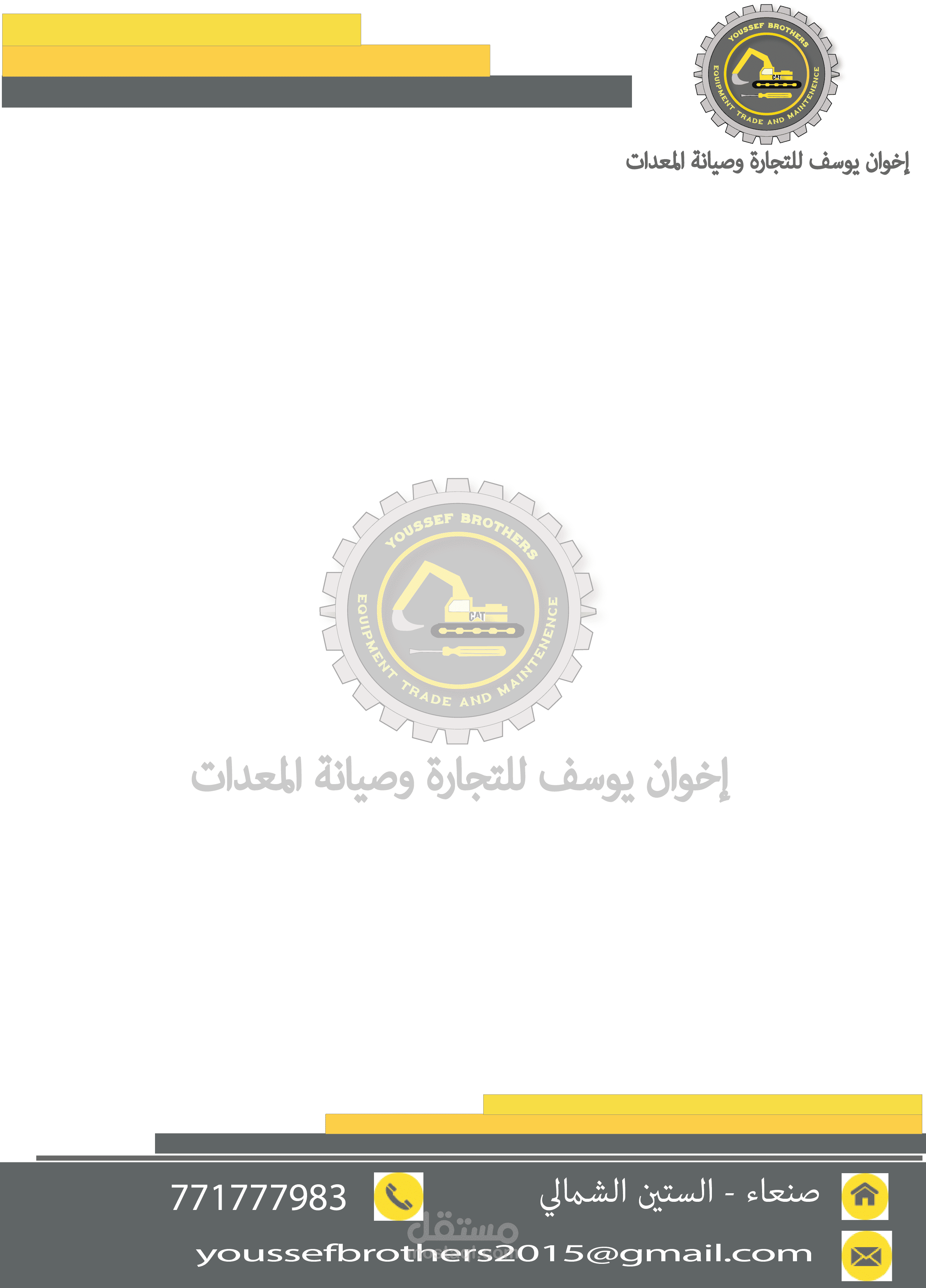 - هذا العمل يتضمن صور تجمع بعض أعمالنا في مجال تصميم الهوية البصرية وهذا كمثال تصميم شعار وهوية بصرية لشركة اخوان يوسف والتي تعمل في مجال صيانة واصلاح المعدات الثقيلة وبيع قطع غيارها والهوية البصرية المصممه تشمل:
