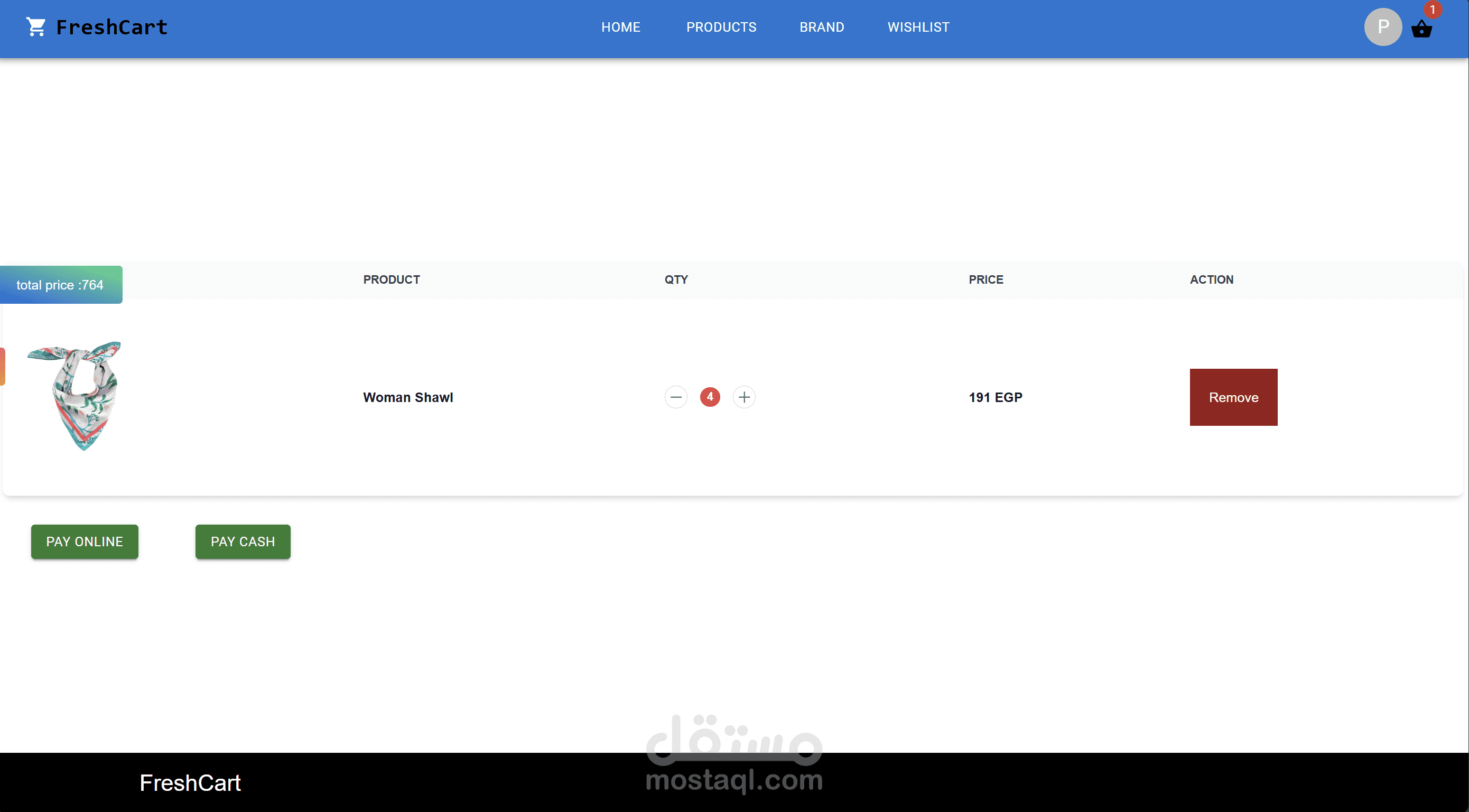 Users can add products to the cart, update quantities, remove items, or save them to a Wishlist. Cart data stays linked to the user’s account. Checkout supports both online card payment and cash on delivery