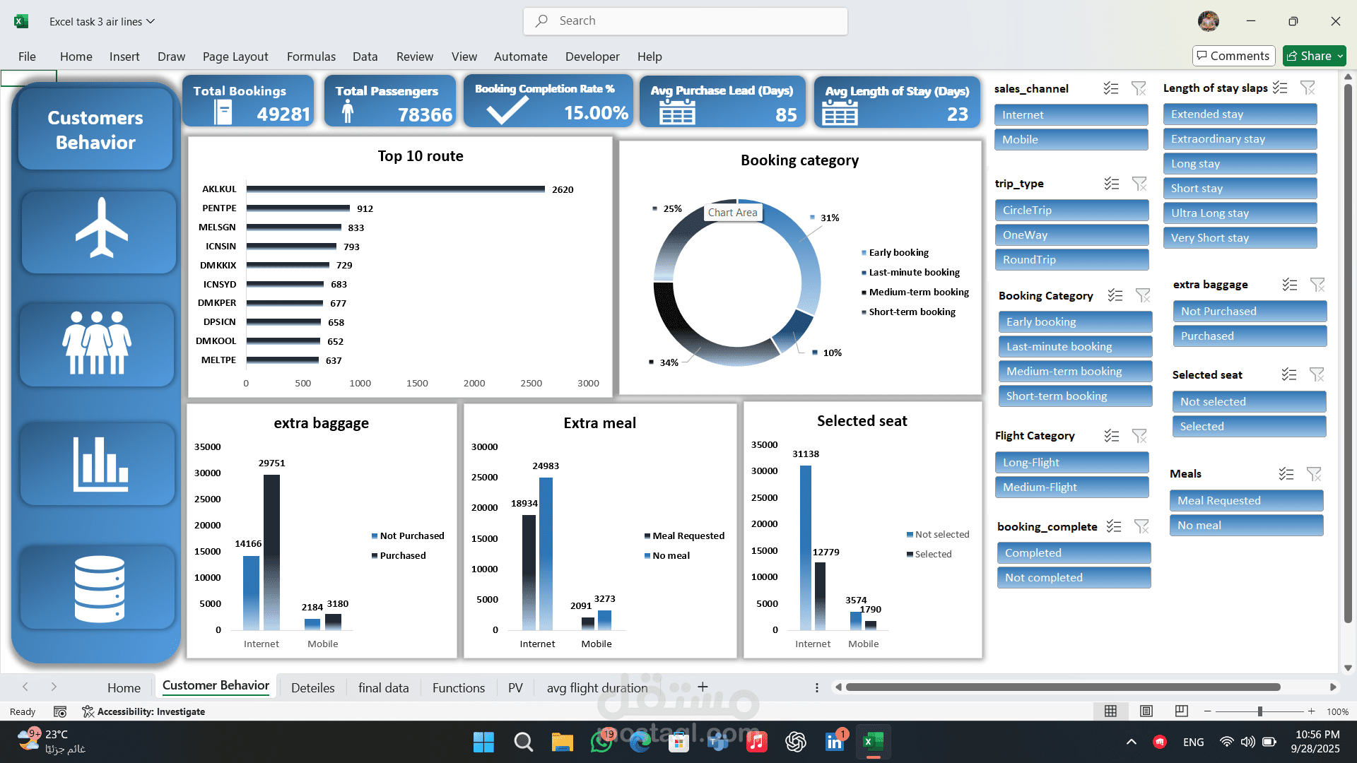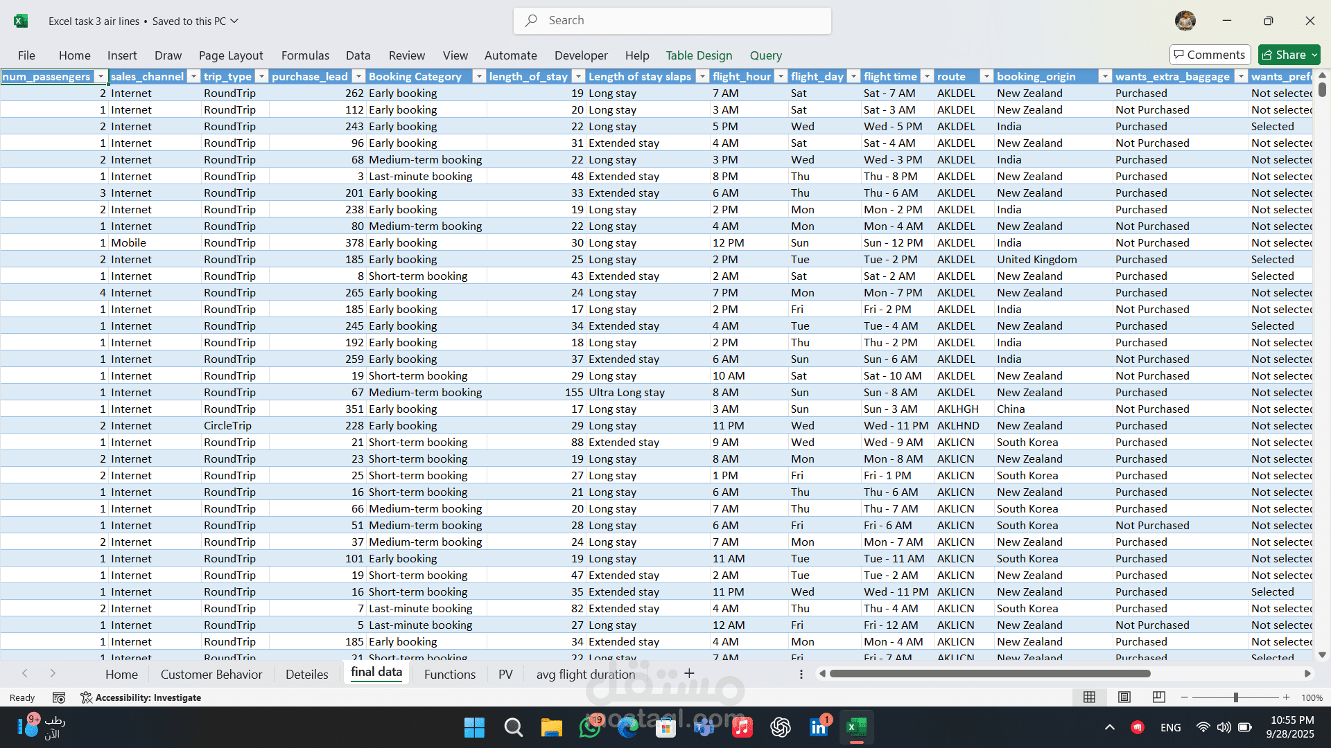 تحليل سلوك عملاء شركة الطيران: رؤى مفتاحية من لوحة البيانات