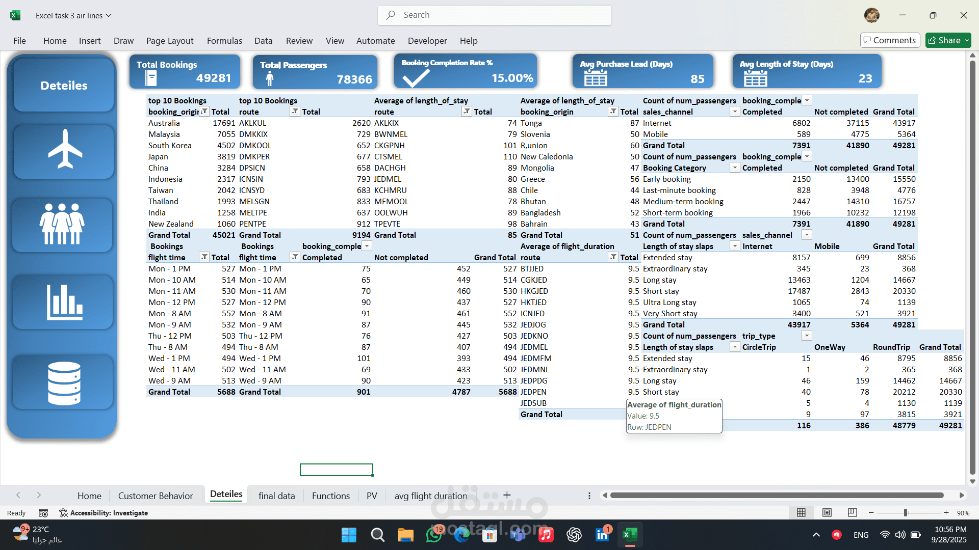 نظرة سريعة على البيانات تُظهر أن الإنترنت هو القناة المسيطرة بلا منازع، مع تفضيل العملاء للتخطيط المسبق لرحلاتهم الطويلة.