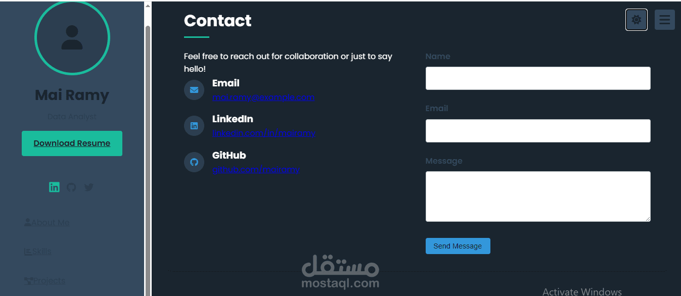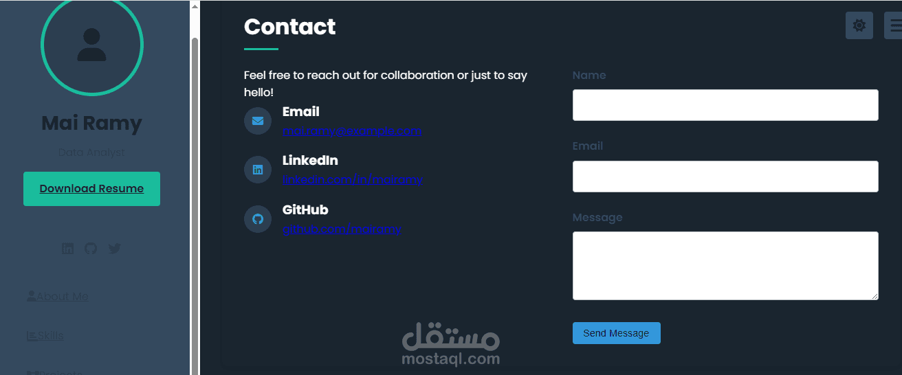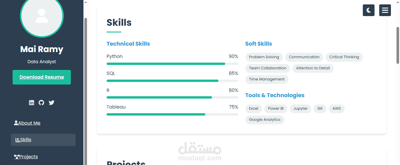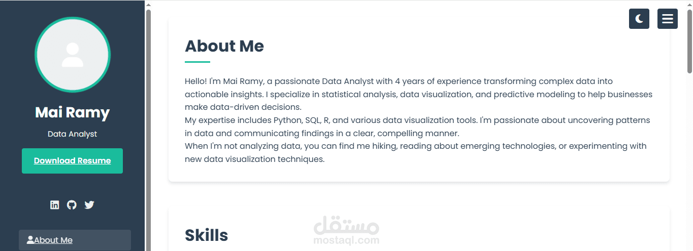 موقع بورتفوليو شخصي (واجهة أمامية) يهدف إلى عرض المشاريع والخدمات بشكل احترافي وجذاب.