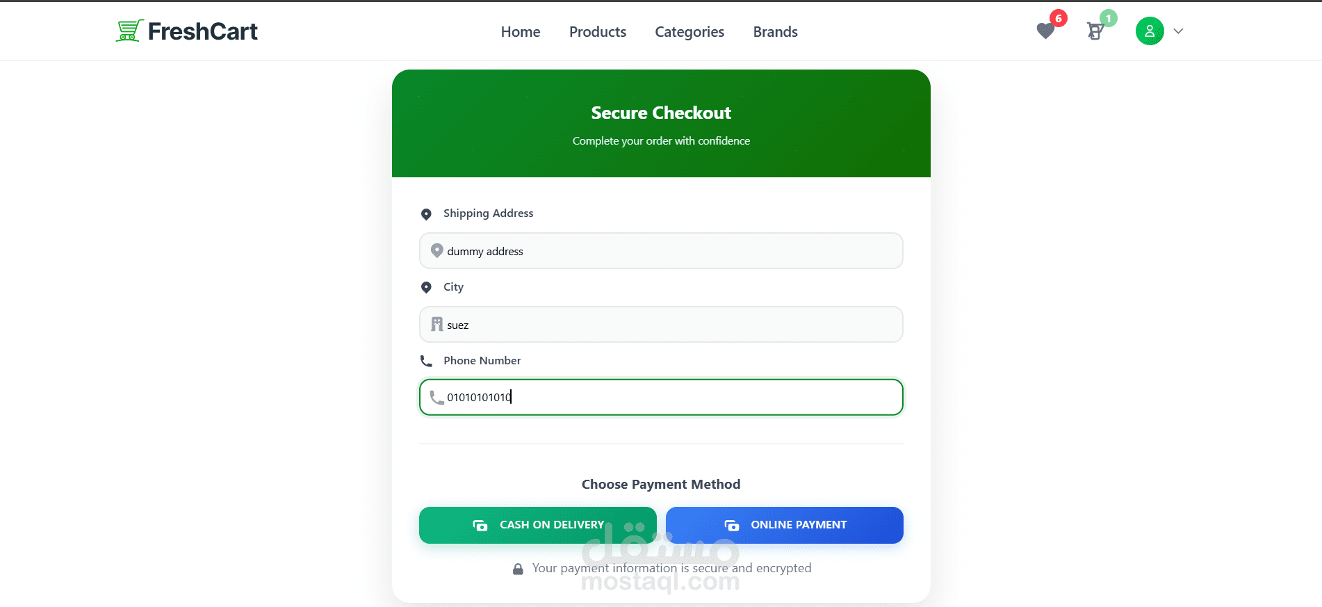 بوابة دفع إلكترونية مدمجة باستخدام Stripe لدعم الدفع بالفيزا الماستر كارد.