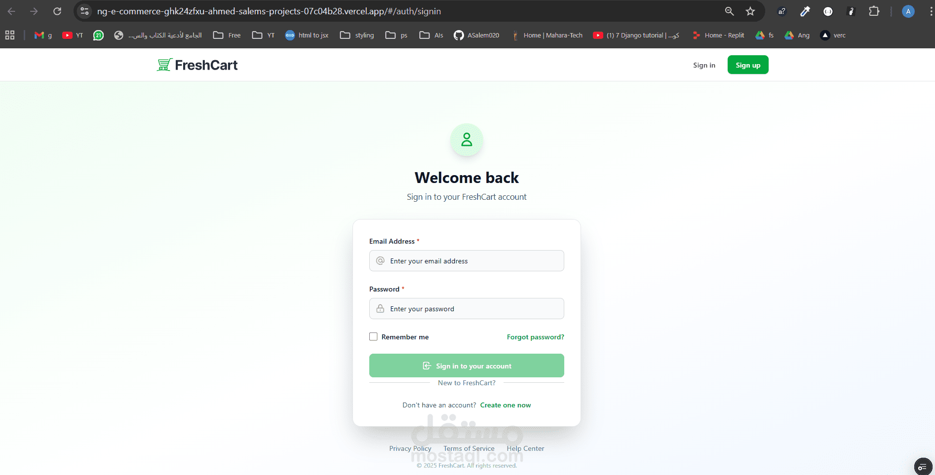 لوحة تحكم (Admin Dashboard) لإدارة المنتجات الطلبات والعملاء.