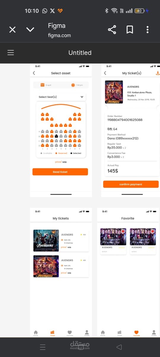 Adding key screens such as: event search, event details, seat selection, and payment summary.
