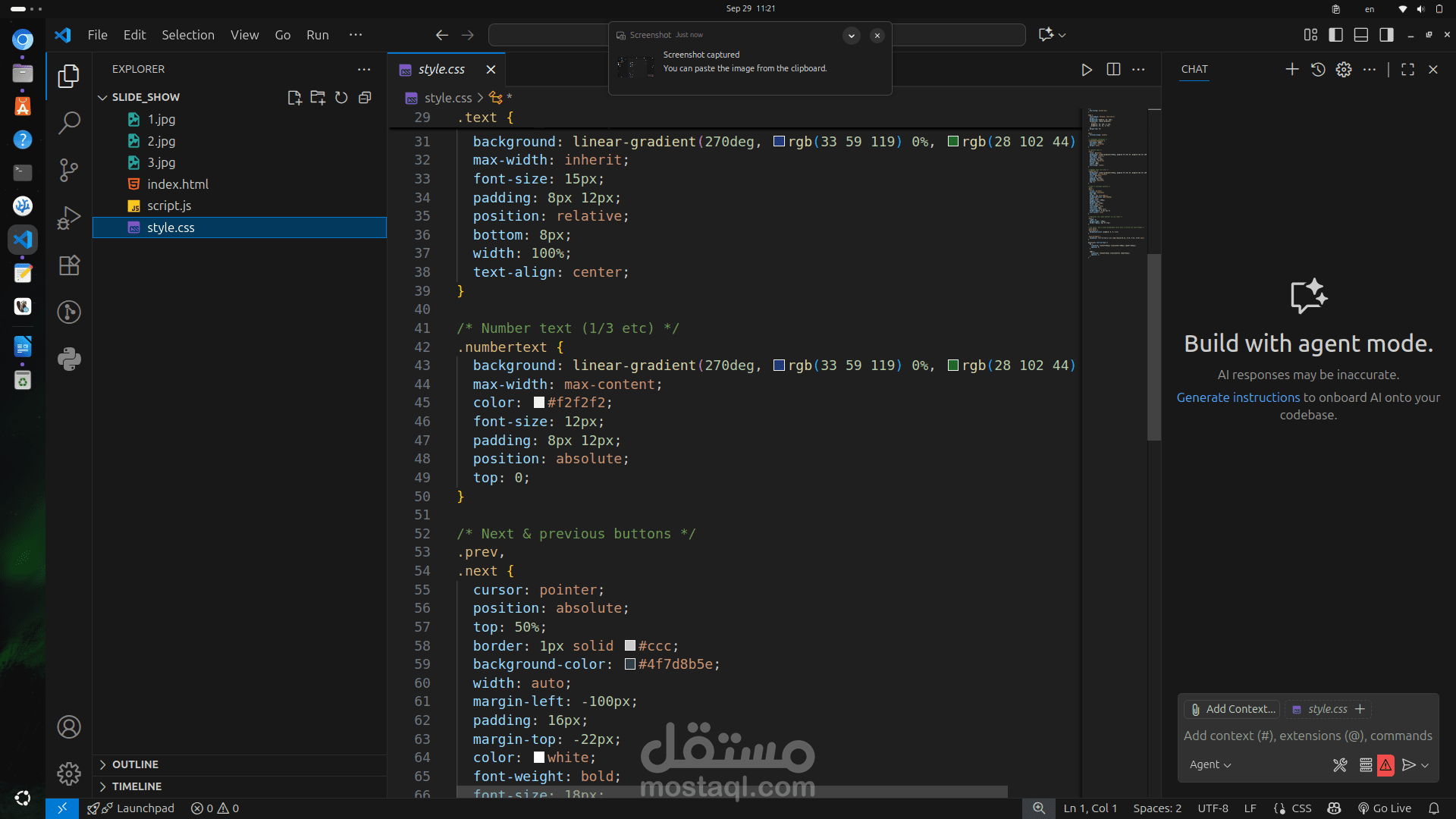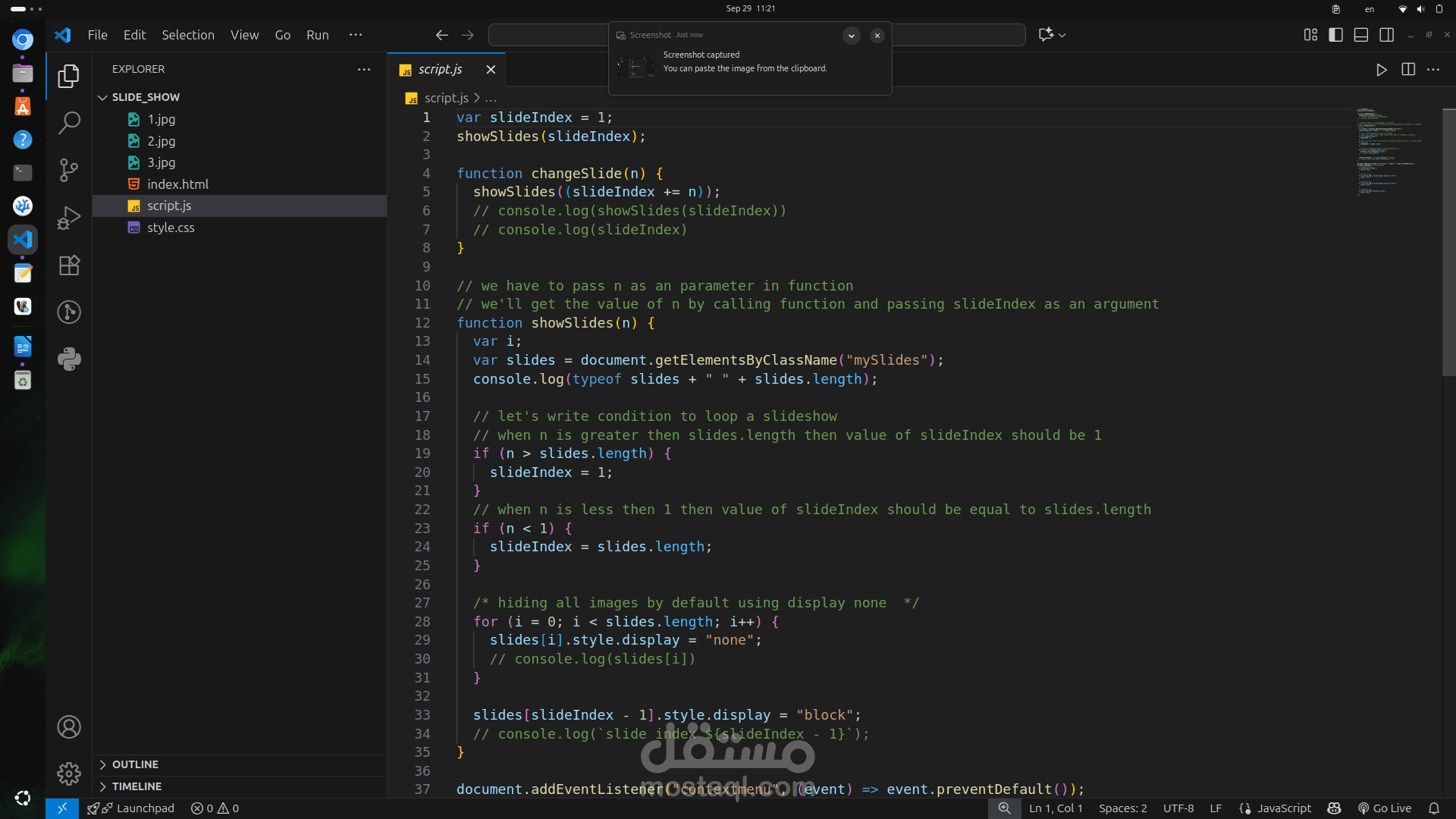 نفّذت مشروع Password Generator Slide Show وهو موقع تفاعلي يعرض فكرة مولّد كلمات مرور آمنة بأسلوب عرض شرائح (Slide Show).