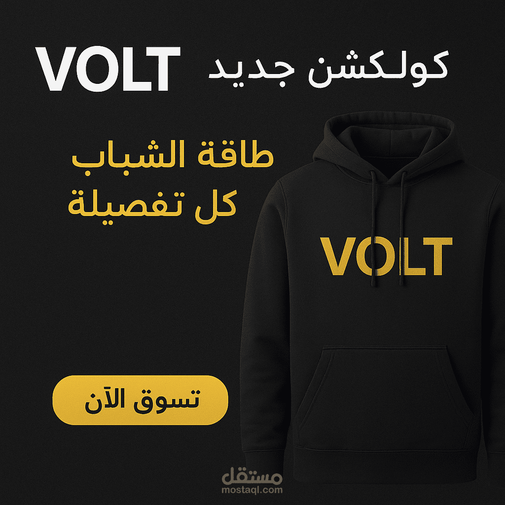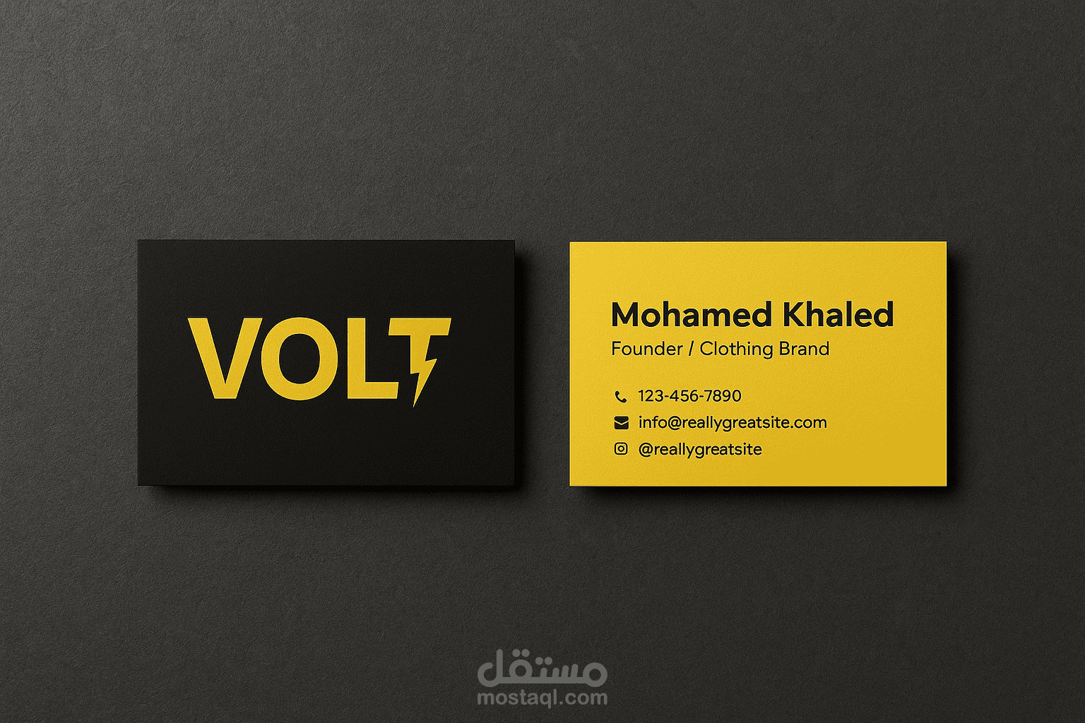 صممت هوية بصرية كاملة لبراند ملابس شبابي باسم Volt (فولت)، ألوانه عصرية وجريئة، وشعاره عبارة عن صاعقة تعكس القوة والحيوية.