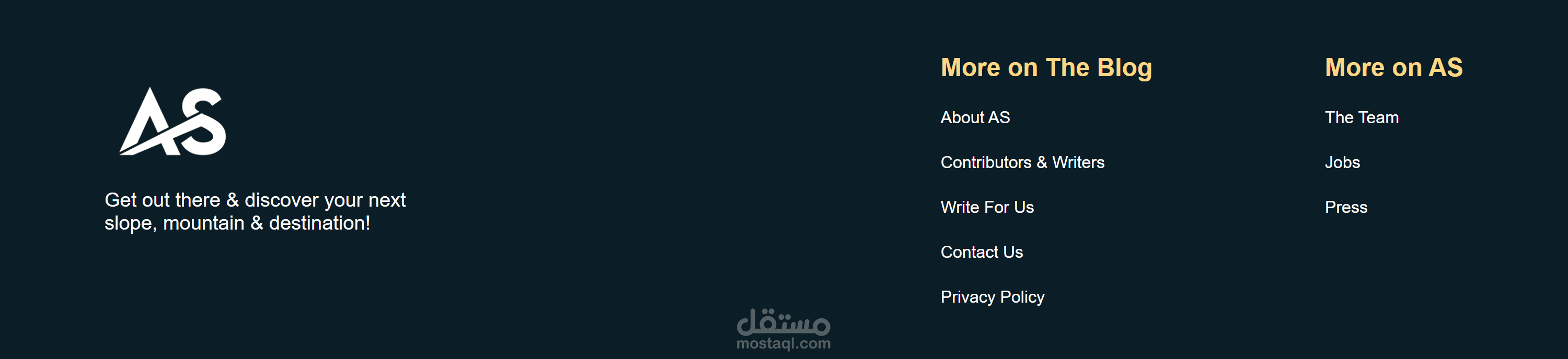 التذييل (Footer) – روابط المدونة، المساهمين، وسائل التواصل، وسياسة الخصوصية.