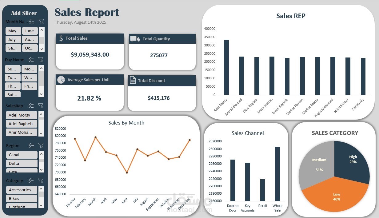 4.Components: High in March, July, September – Fridays lead – Low category dominant – Sinai & Canal lead in sales.