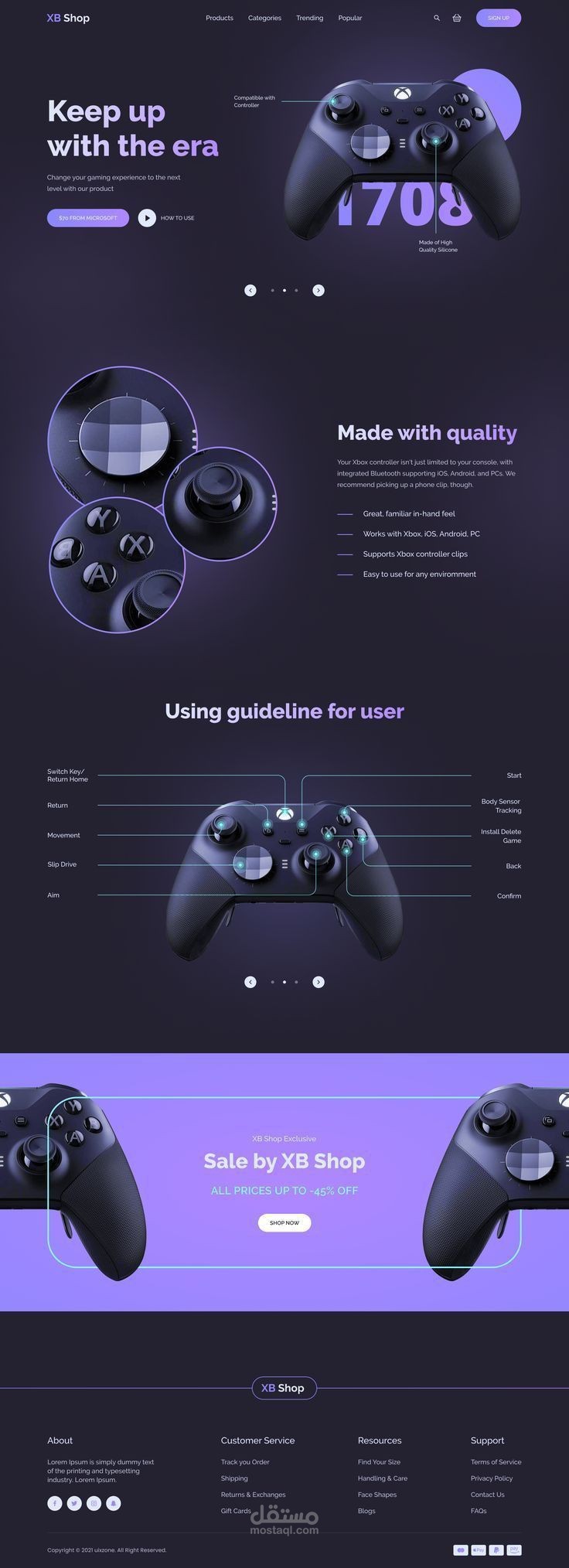 تصميم صفحة هبوط لمتجر الإلكتروني "XB Shop" المتخصص في إكسسوارات الألعاب.