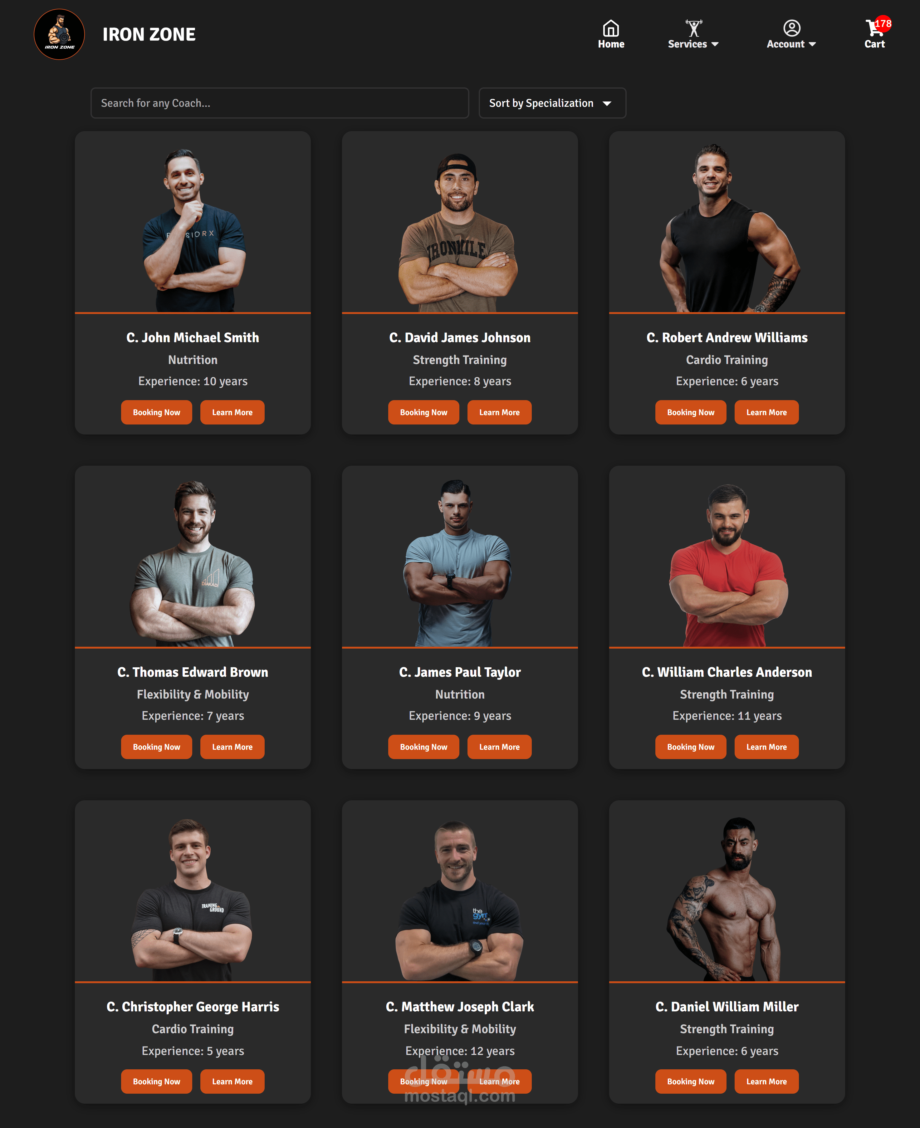 مشروع متكامل لإدارة بيانات الجيم يهدف لتبسيط إدارة الحصص، الاشتراكات، المكملات الغذائية، والمدربين مع التركيز على الأمان وقابلية التوسع.