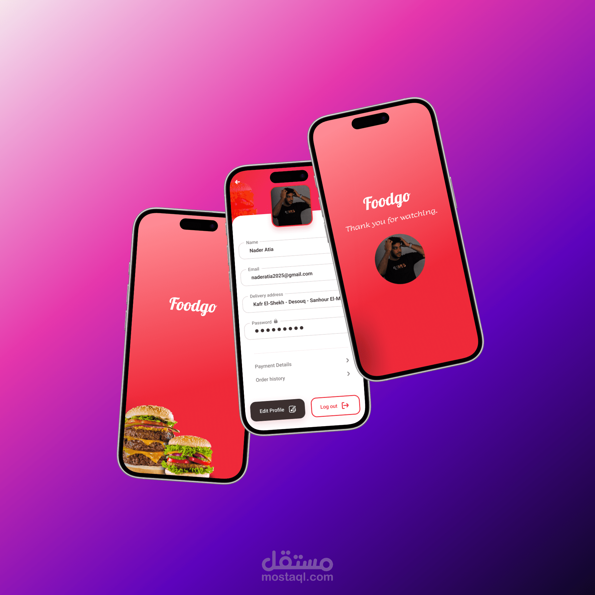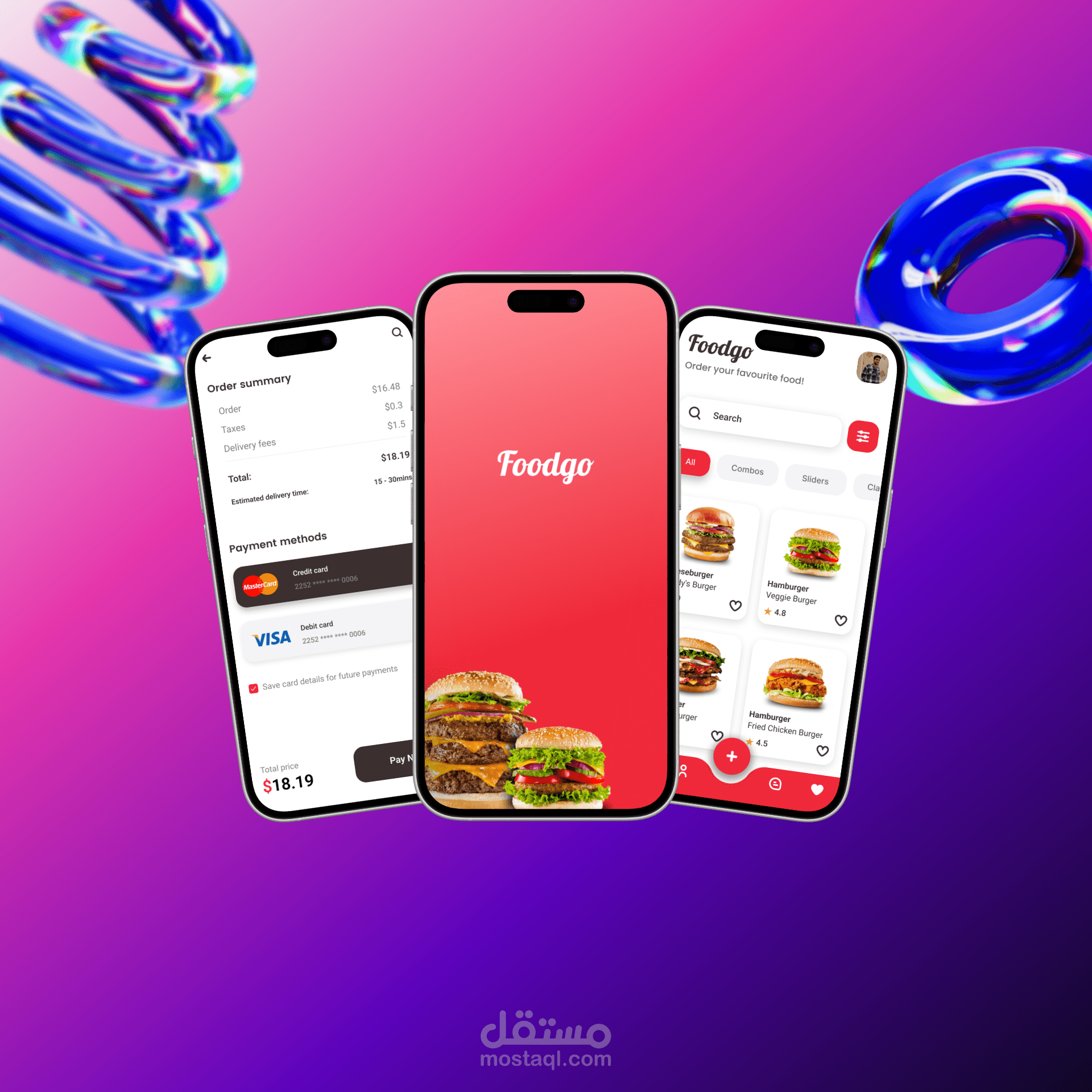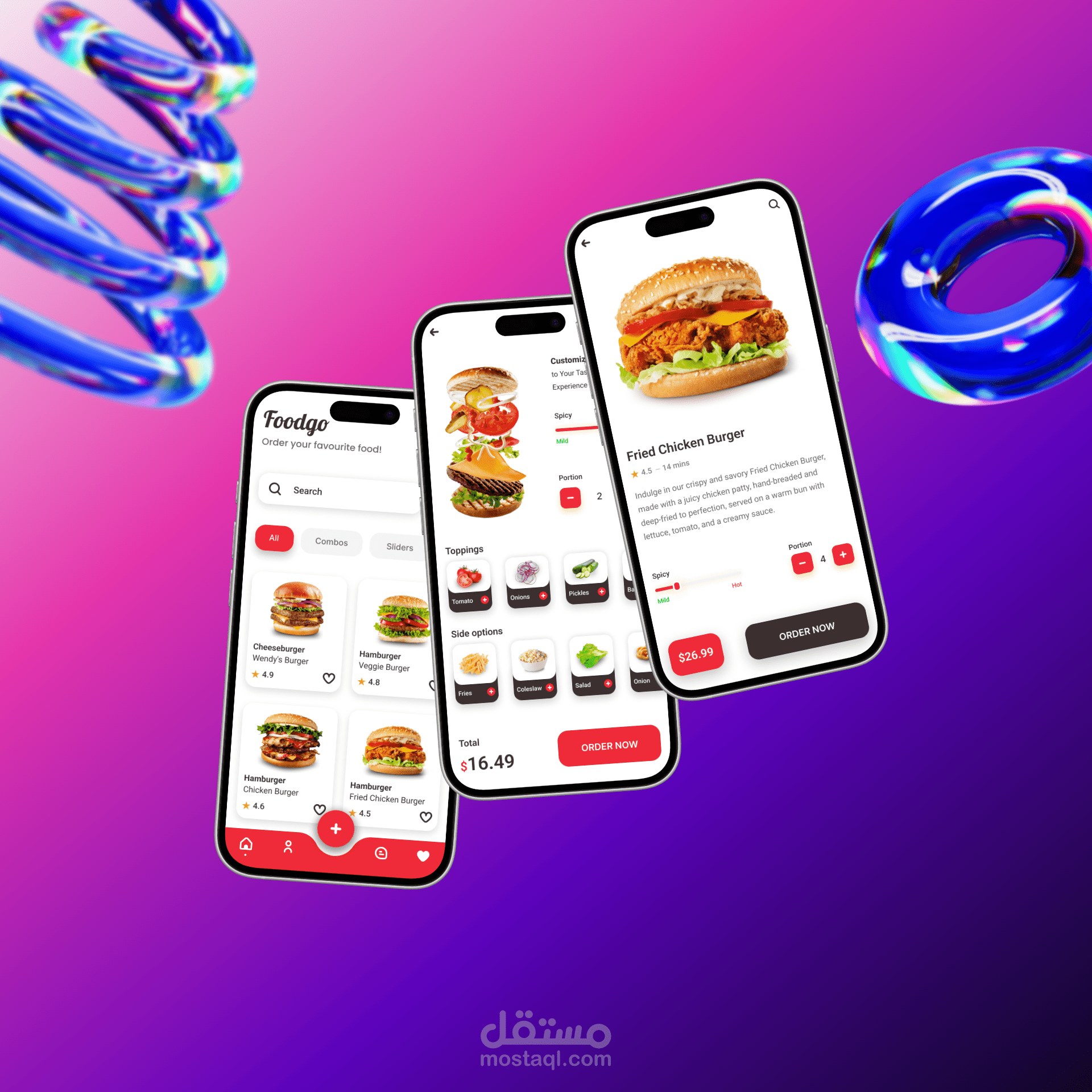 قمت بتصميم واجهات تطبيق Fodgo المتخصص في طلب وتوصيل الأطعمة والوجبات السريعة.