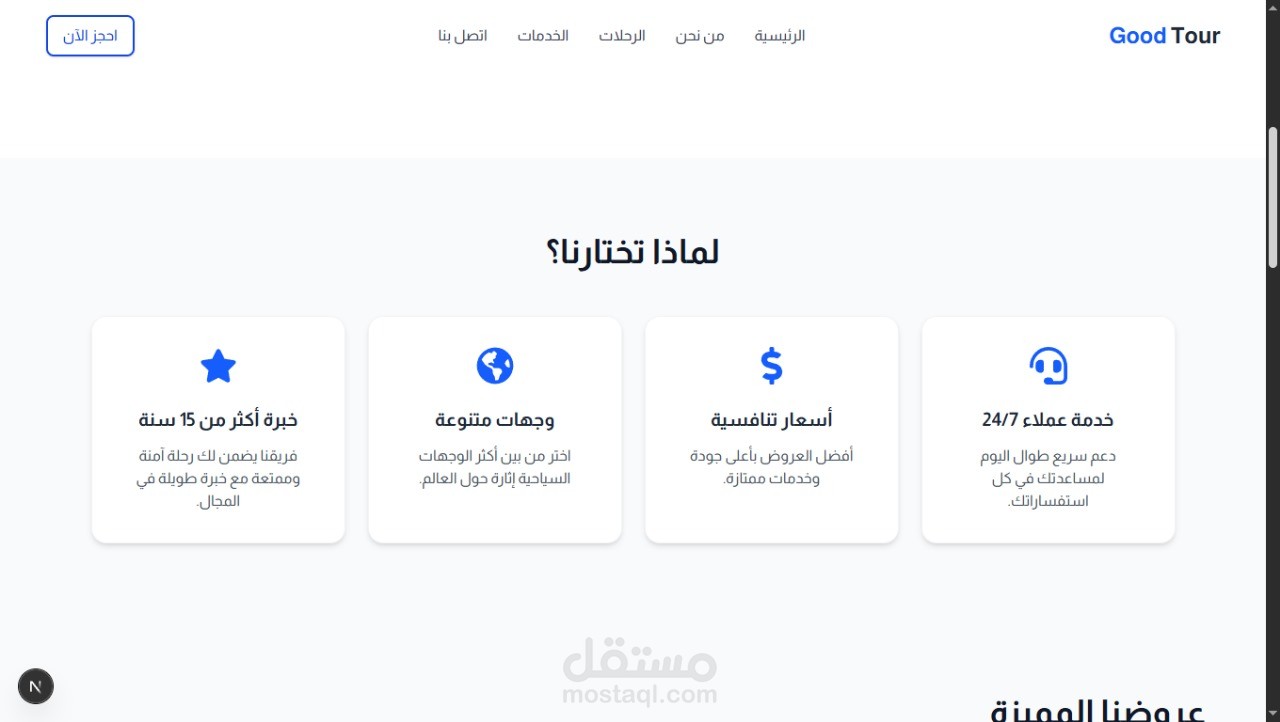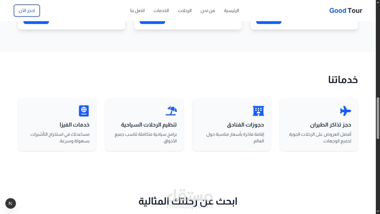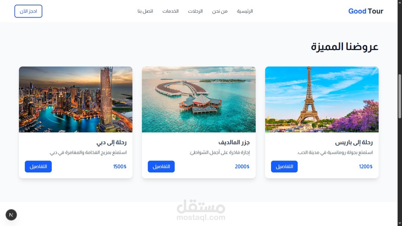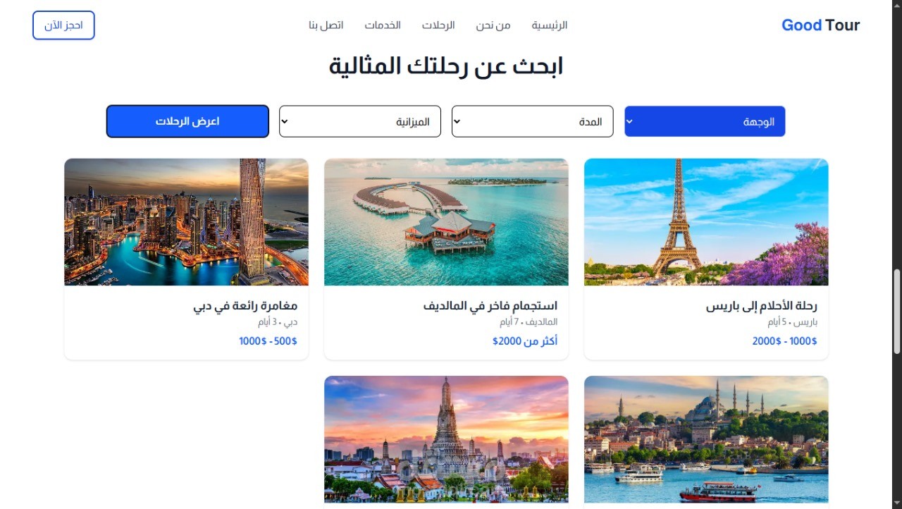 كما تم تضمين خاصية تصفية الرحلات حسب الوجهة والمدة والميزانية لتمكين الزوار من الوصول إلى رحلتهم المثالية بسهولة.