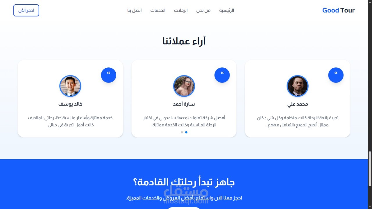 قمت بتصميم وتطوير موقع تجريبي لشركة سياحية بهدف عرض الخدمات والرحلات بشكل احترافي وجذاب.