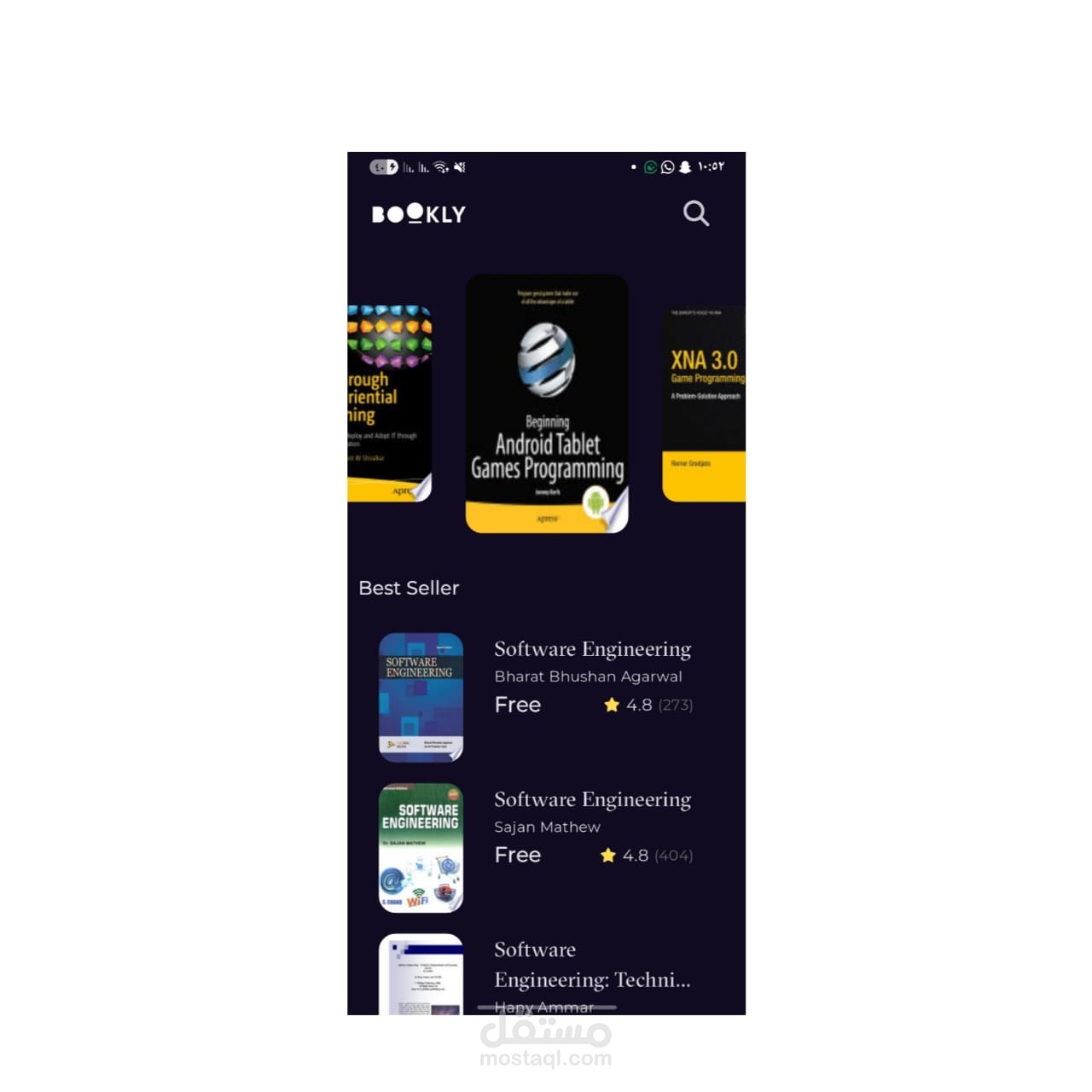 تطبيق موبايل باستخدام Flutter لتصفح وقراءة الكتب، يتميز بدمج واجهات برمجة التطبيقات (API Integration)، وإدارة الحالة باستخدام Bloc، مع واجهة مستخدم نظيفة وسهلة الاستخدام.