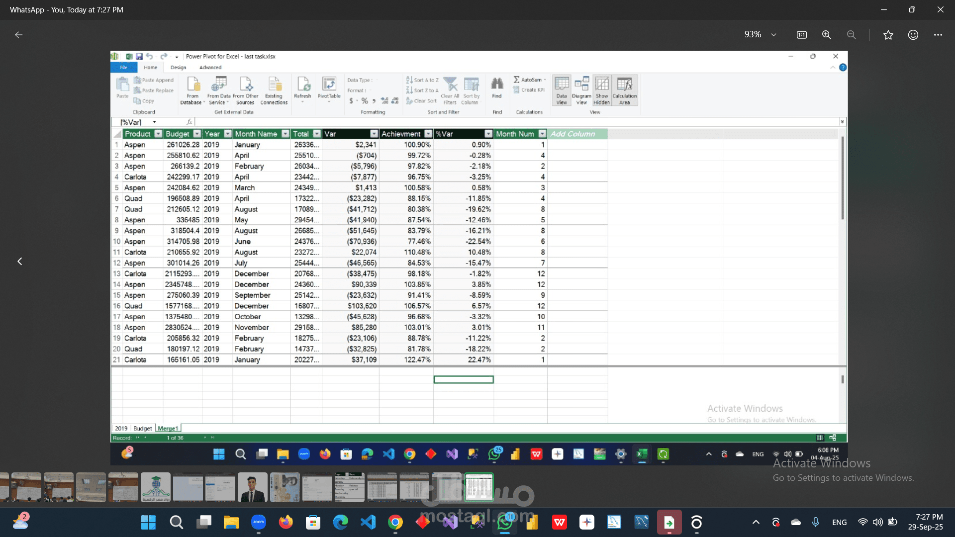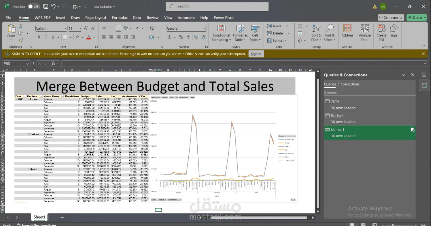 anlaysis and compare between budget for each product and actual sales