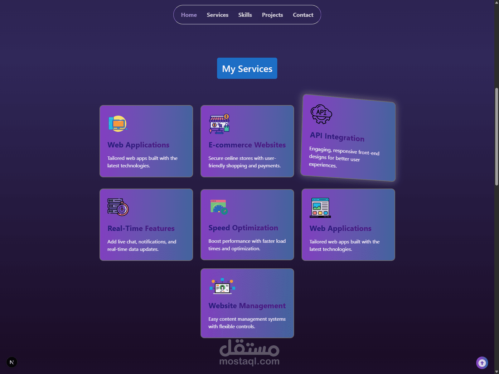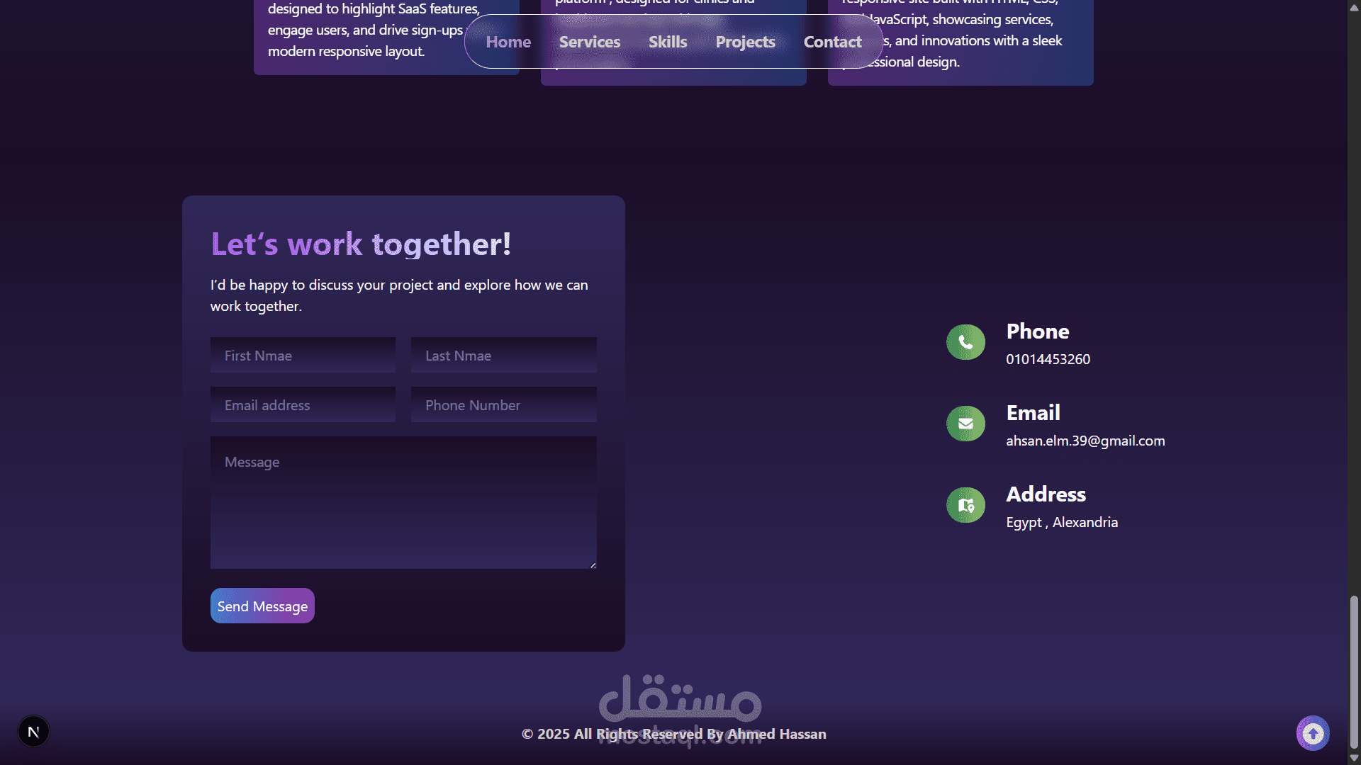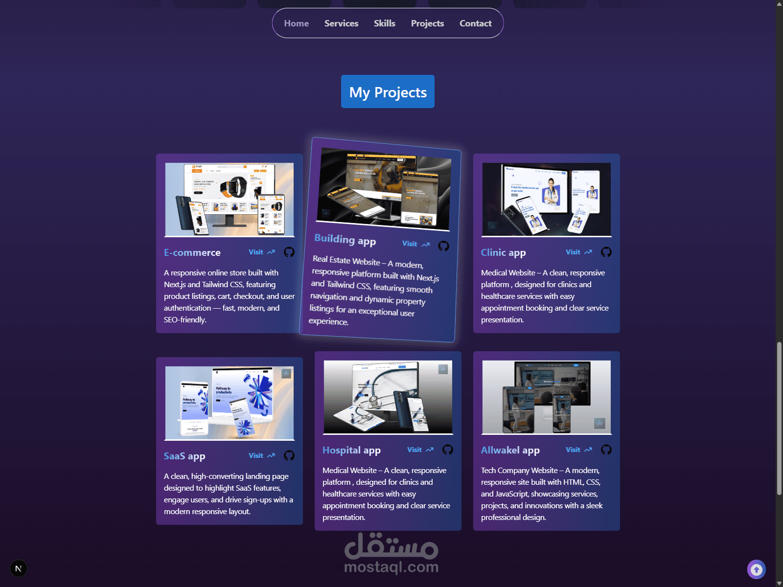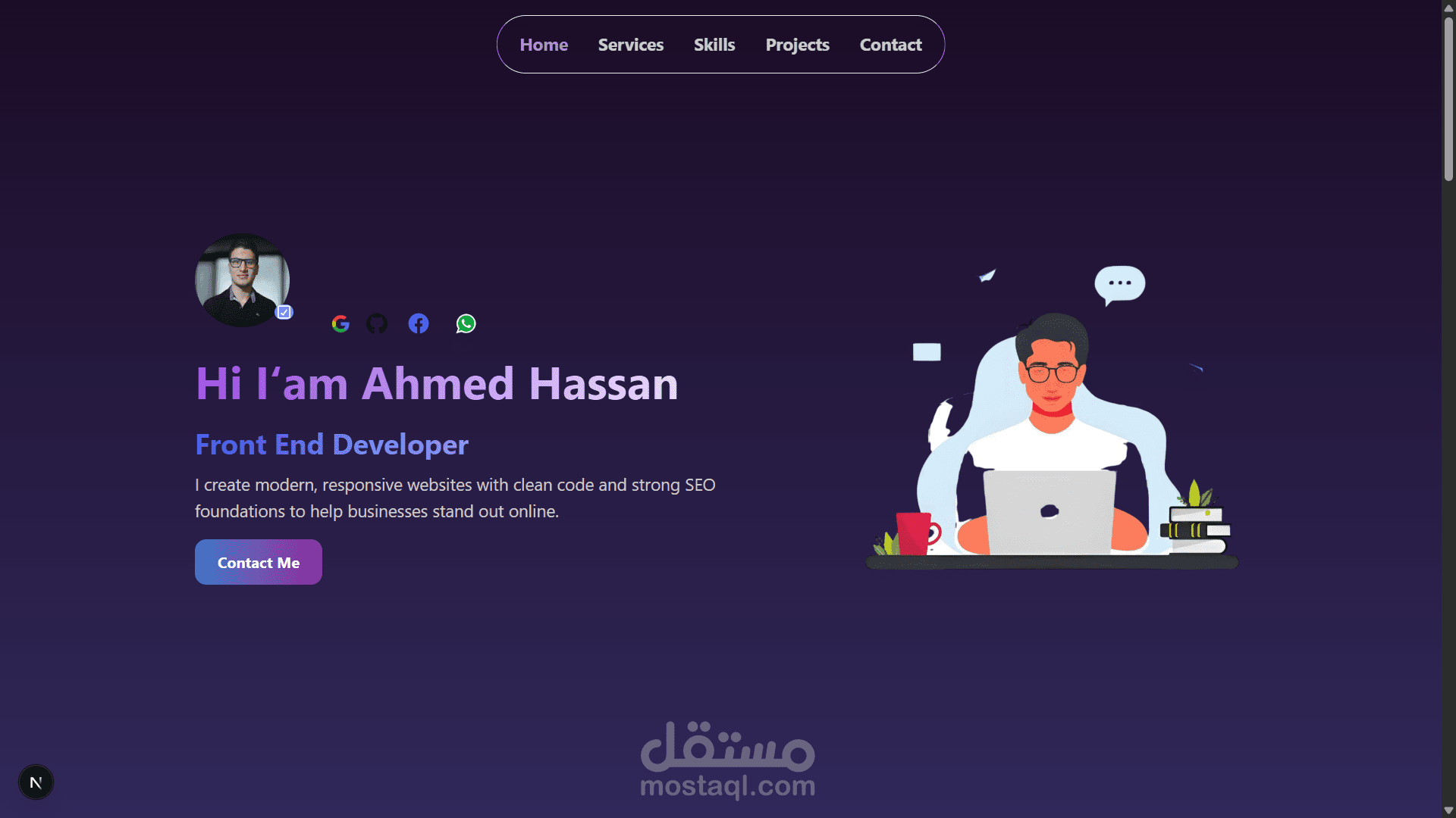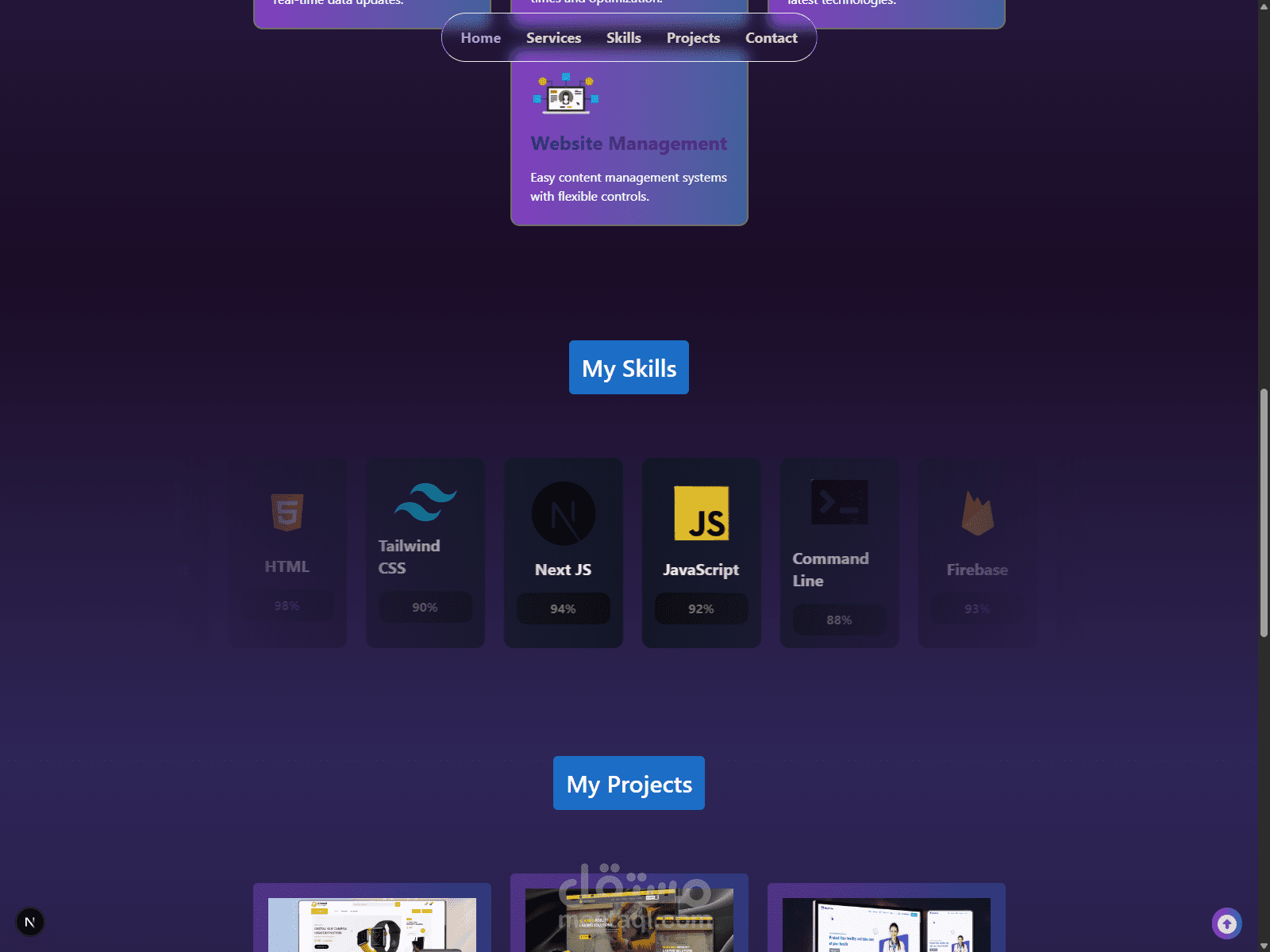 احب اشارككم portfolio شخصي لأظهار نبذة عني - خدماتي - ومشارعي - مهاراتي , مع توافر نموذج للتواصل .