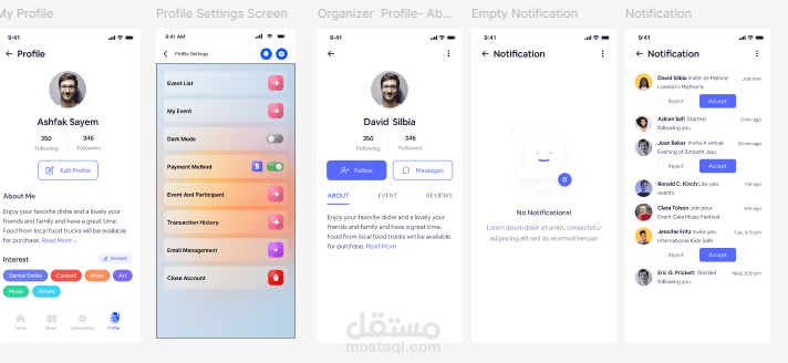 قمت بتصميم الـ UI/UX باستخدام Figma وتطوير الواجهة الأمامية بـ Flutter.