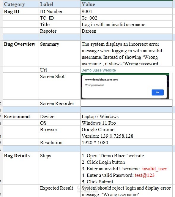 هذا المشروع ركز على اختبار يدوي شامل لموقع التجارة الإلكترونية DemoBlaze، واتبعنا Software Testing Lifecycle (STLC) كامل. شمل العمل: