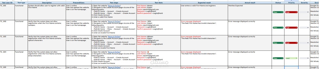 قمت بتنفيذ Functional Testing شامل لموقع Bang & Olufsen للتأكد من أن جميع الوظائف الأساسية تعمل بشكل صحيح. شمل العمل: