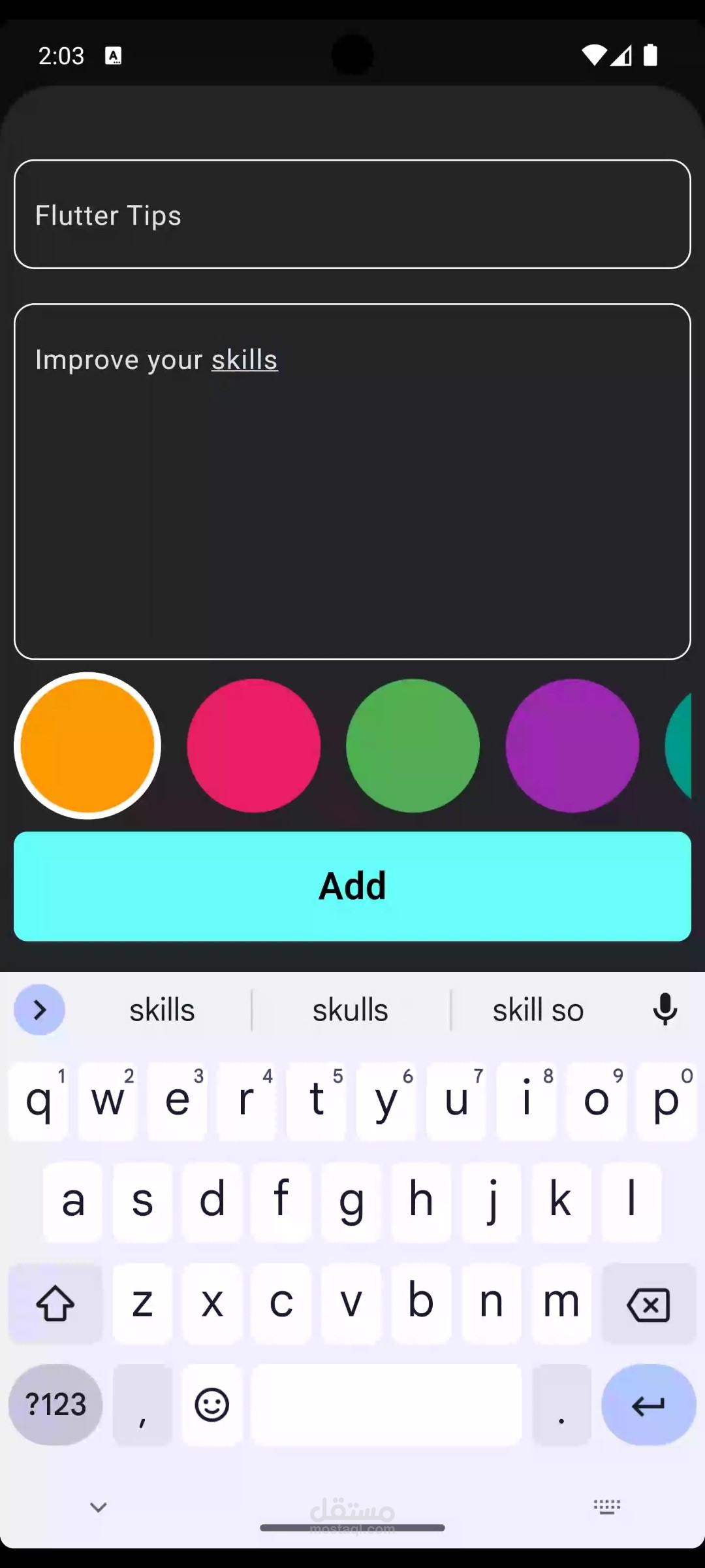 يوفر إنشاء وحفظ الملاحظات بعناوين ومحتوى وألوان مخصصة، تعديل وتحديث الملاحظات بسهولة، بحث سريع ودقيق داخل الملاحظات، حذف ملاحظات مع واجهة مستخدم سلسة