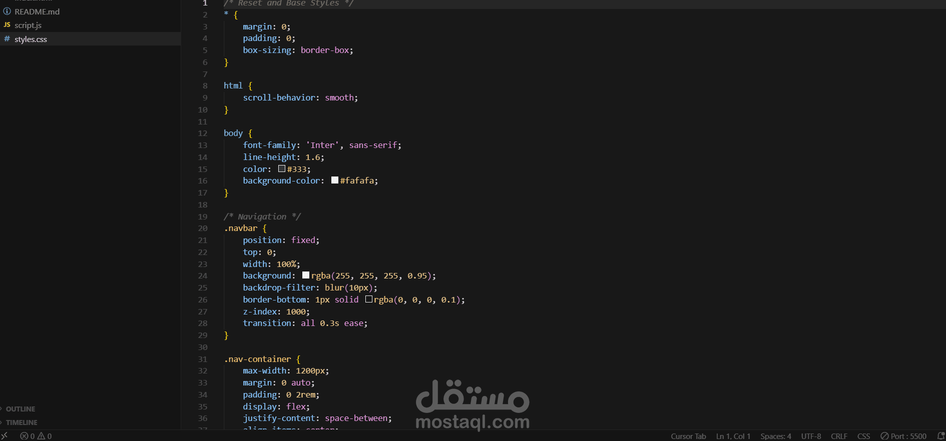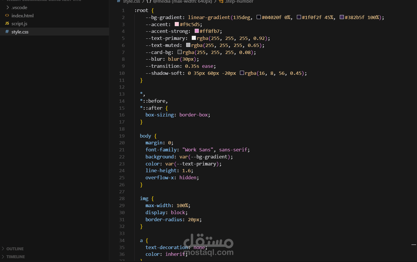 متغيرات CSS عبر :root للألوان والمؤثرات.