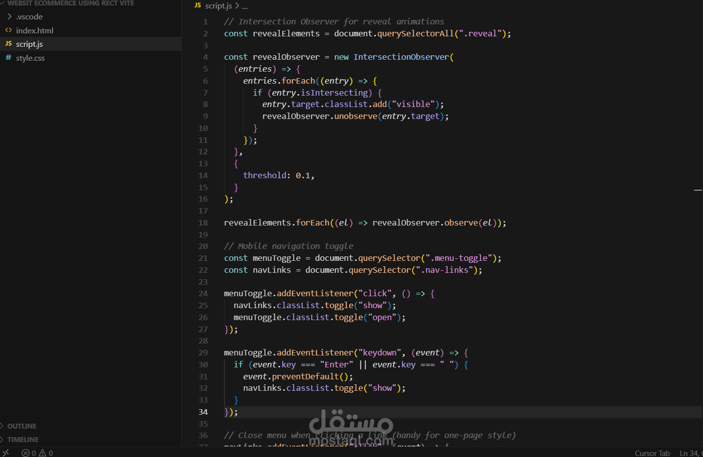 IntersectionObserver لكشف العناصر التدريجي عند الظهور.