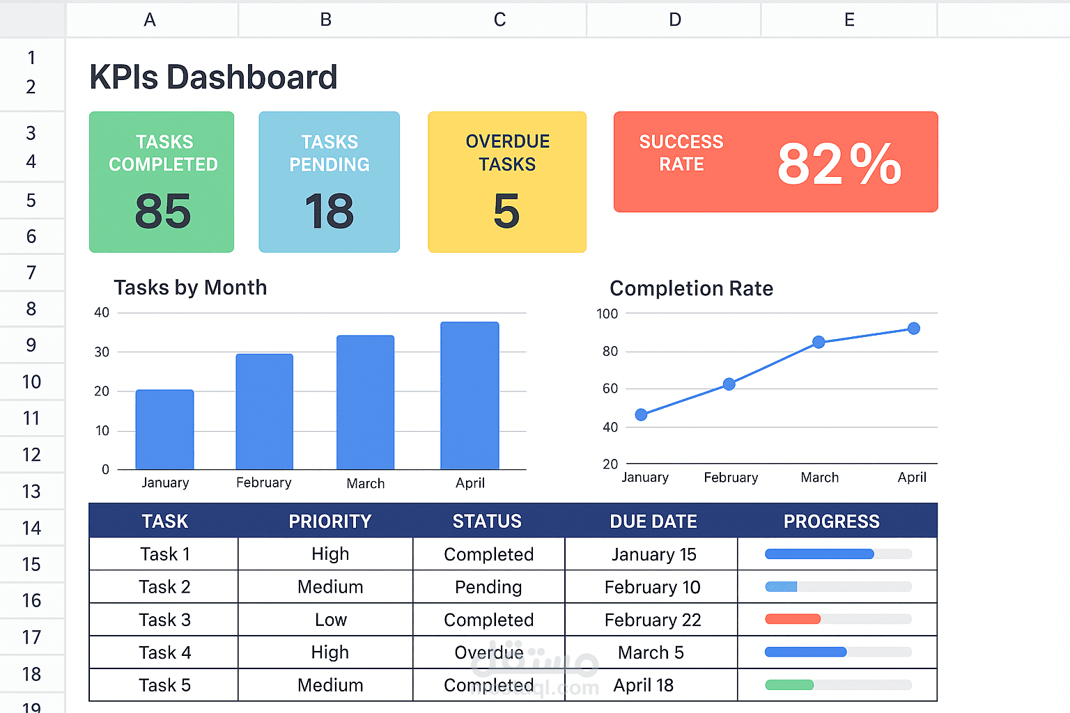 إعداد ومتابعة لوحات متابعة الأداء (KPIs Dashboards) على Google Sheets.