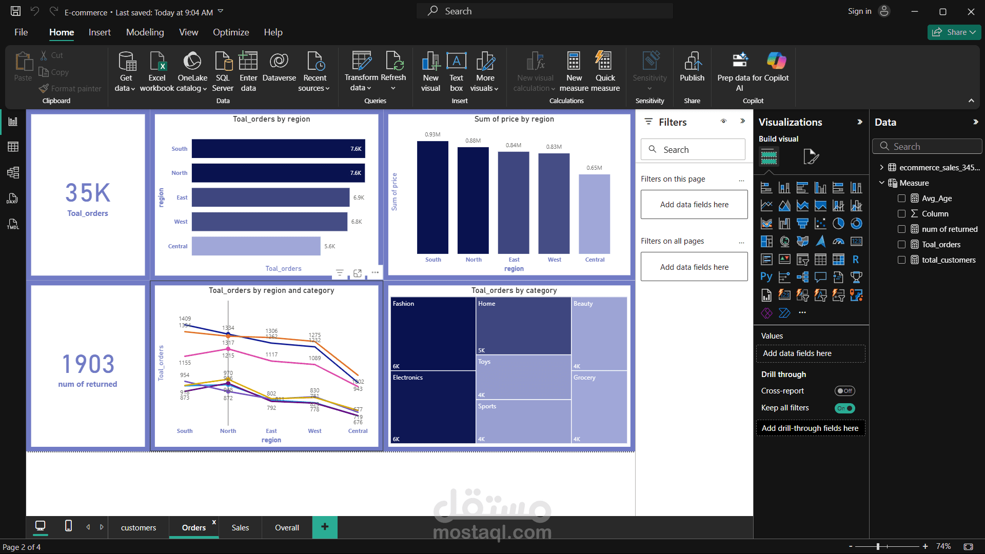 The project uses DAX measures to calculate essential KPIs such as total sales and total order value These KPIs are visualized through interactive charts and dashboards that facilitate quick decision-making.