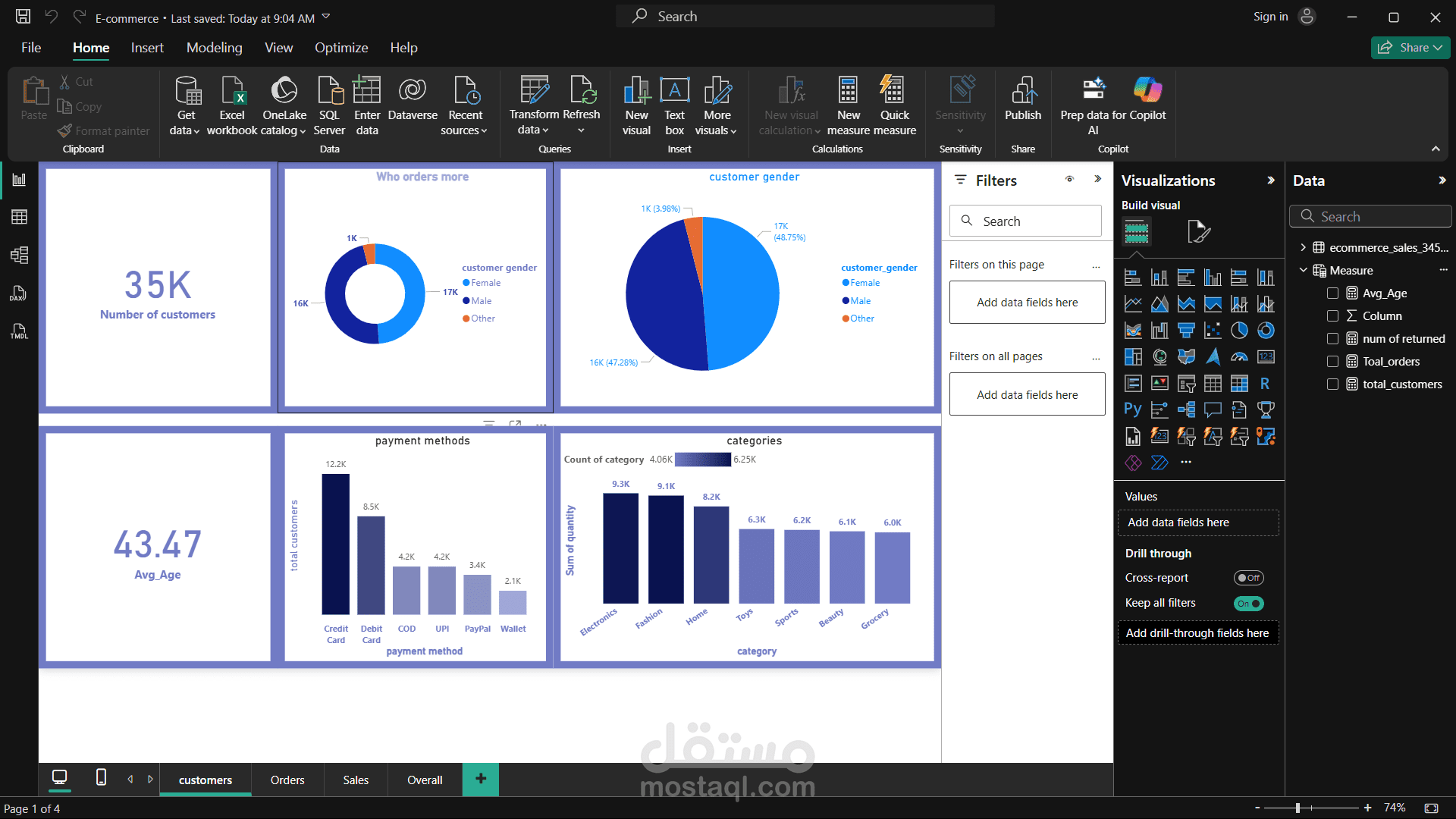 This eCommerce project leverages Power BI and DAX to deliver comprehensive data insights and performance tracking. It integrates sales, customer, and product data to create dynamic visuals that highlight key trends and business metrics.